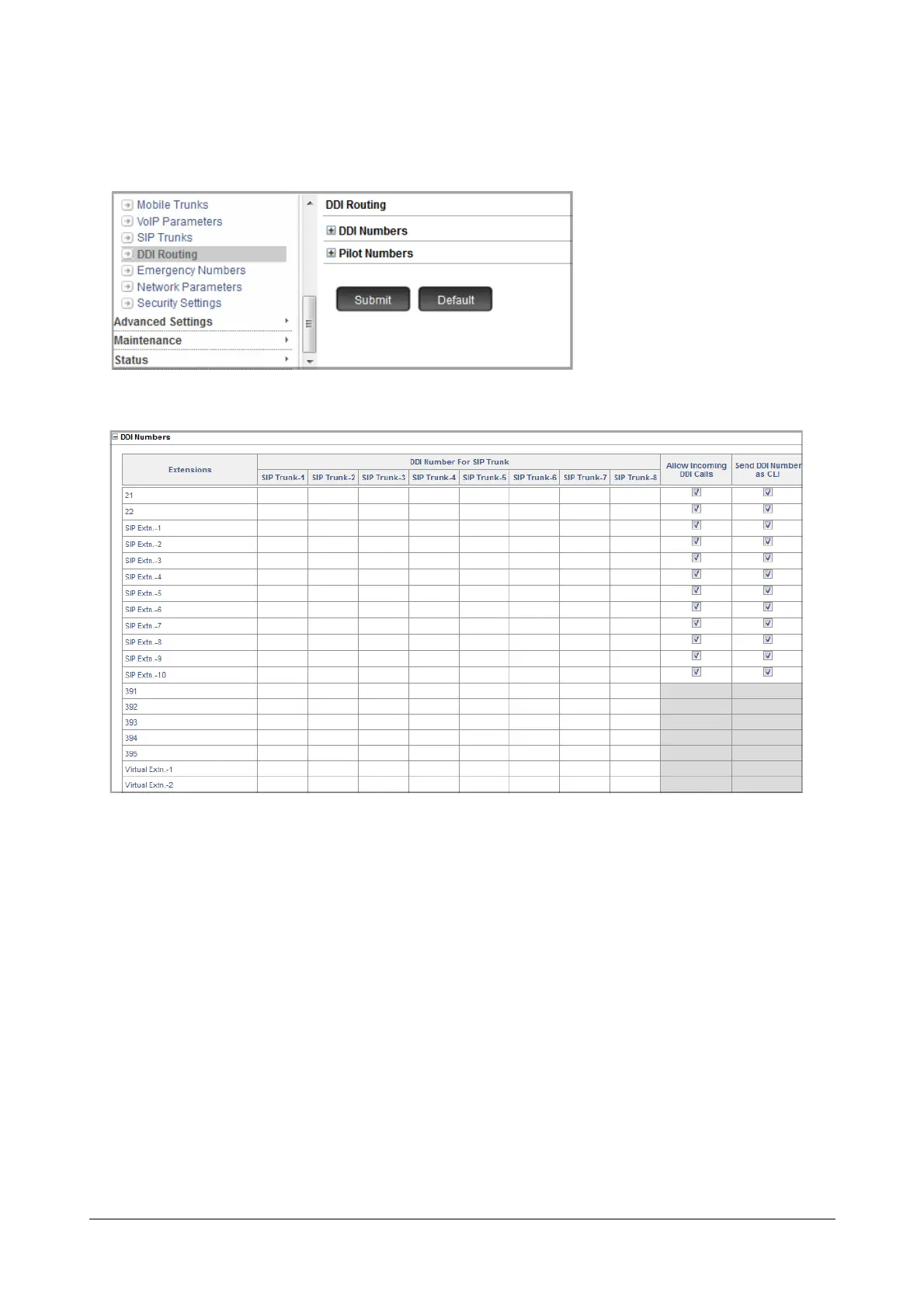 •In DDI Number for SIP Trunk, for each SIP Trunk, enter the DDI Numbers provided by the ITSP of