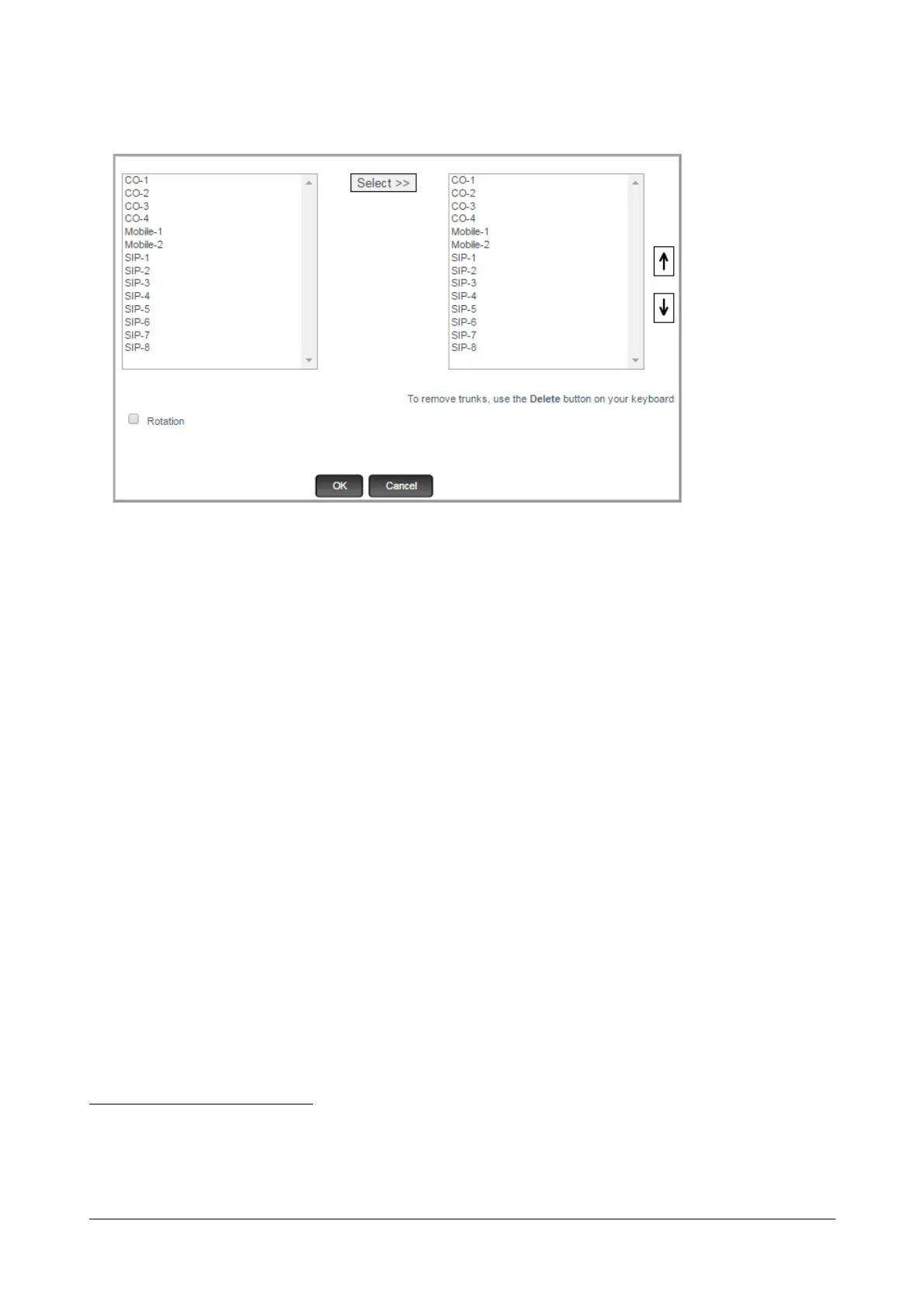 To change the sequence of the trunks you selected, use the Up and Down arrow buttons on the right