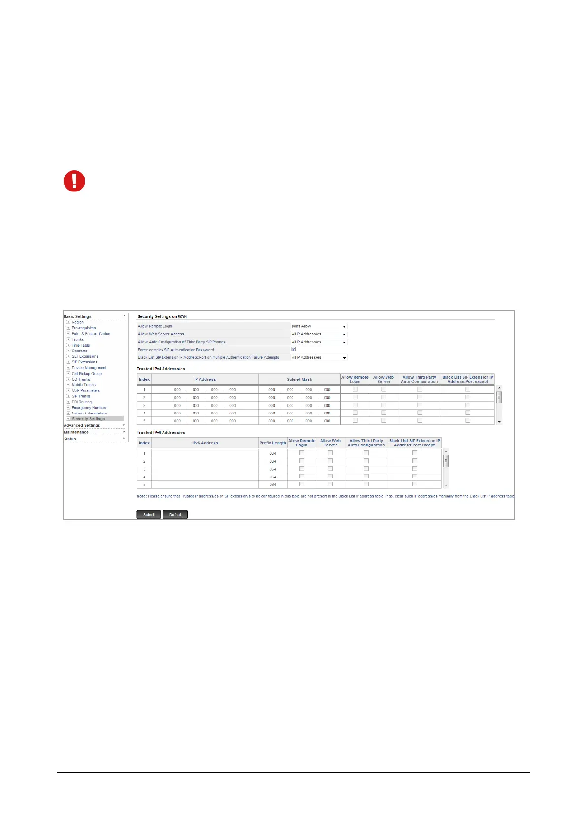 • configure the IP Address/es and their respective Subnet Mask in the Trusted IPv4 Address/es table.