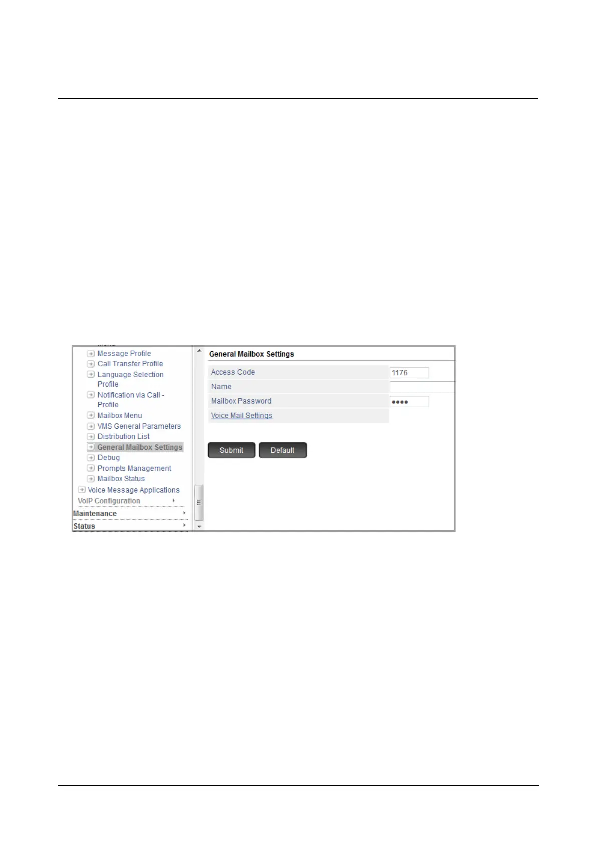 Extension Voice Mail Settings, extensions users can access the General Mailbox by dialing the default