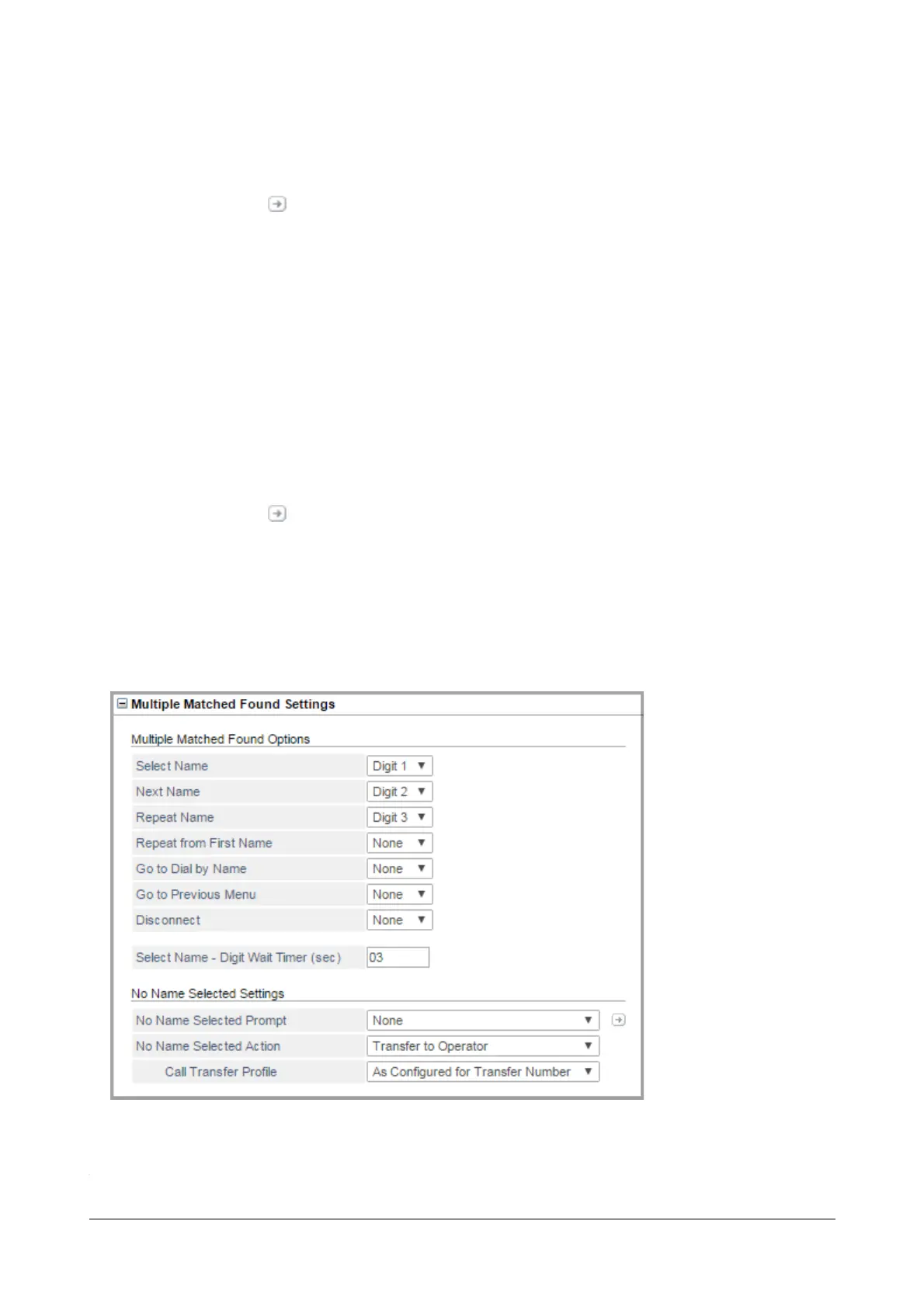 •In No Match Found Action, you can select — Disconnect, Transfer to Operator, Transfer to Extension,