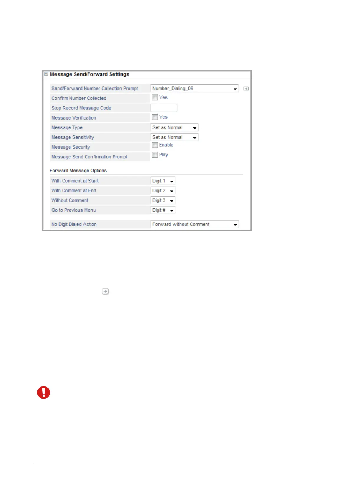 selected the Send Message or Forward Message option. This is to prompt the extension user for entering