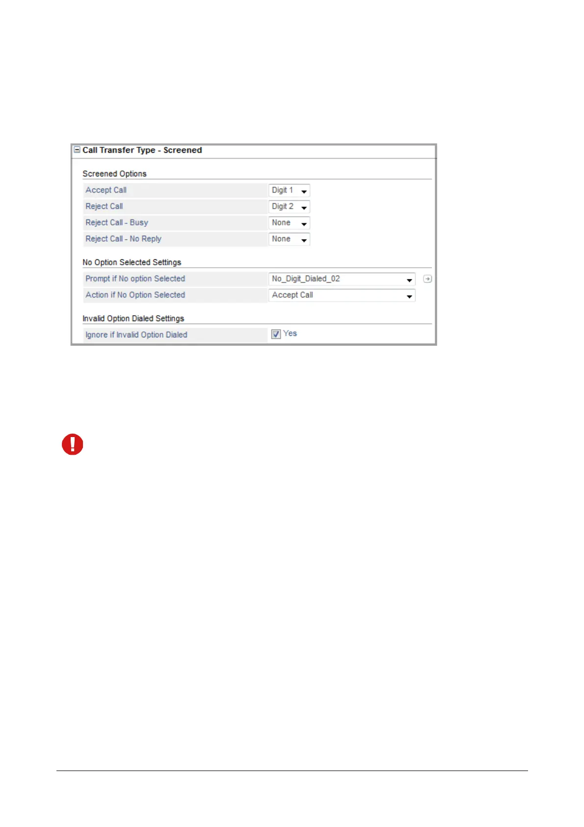 • Reject Call - Busy - When this option is selected, system will consider it as Call Transfer Unsuccessful -