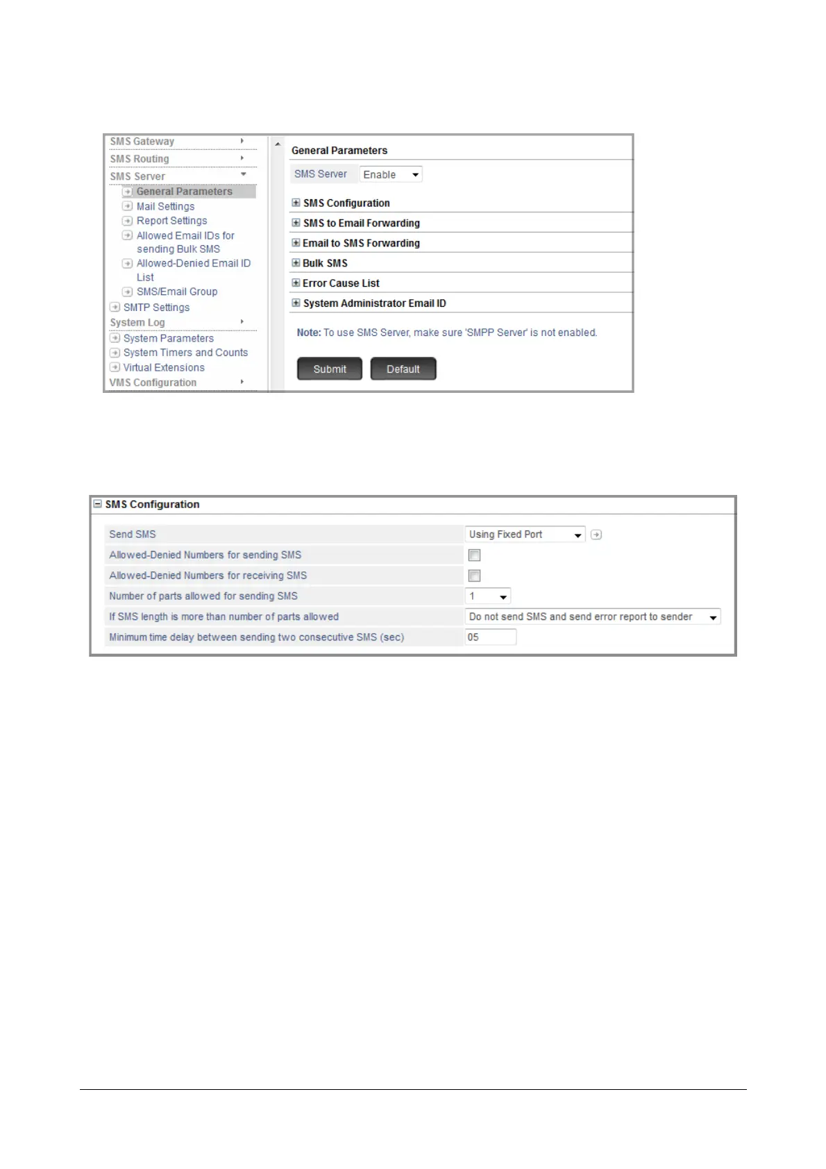 • By default, the SMS Server is disabled. To use the SMS Server feature, select Enable.