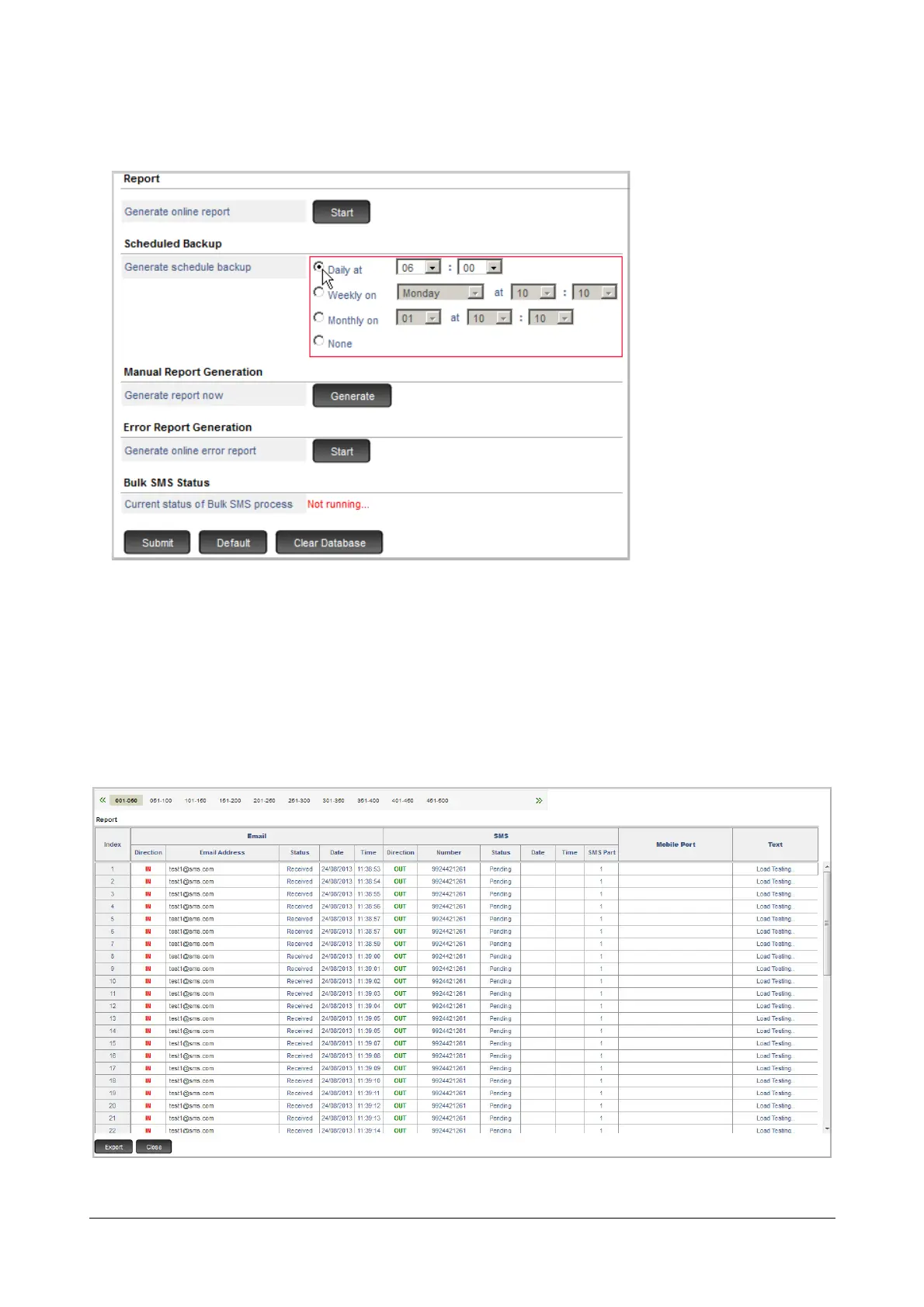 • To generate the report manually, under SMS Server, click Report.