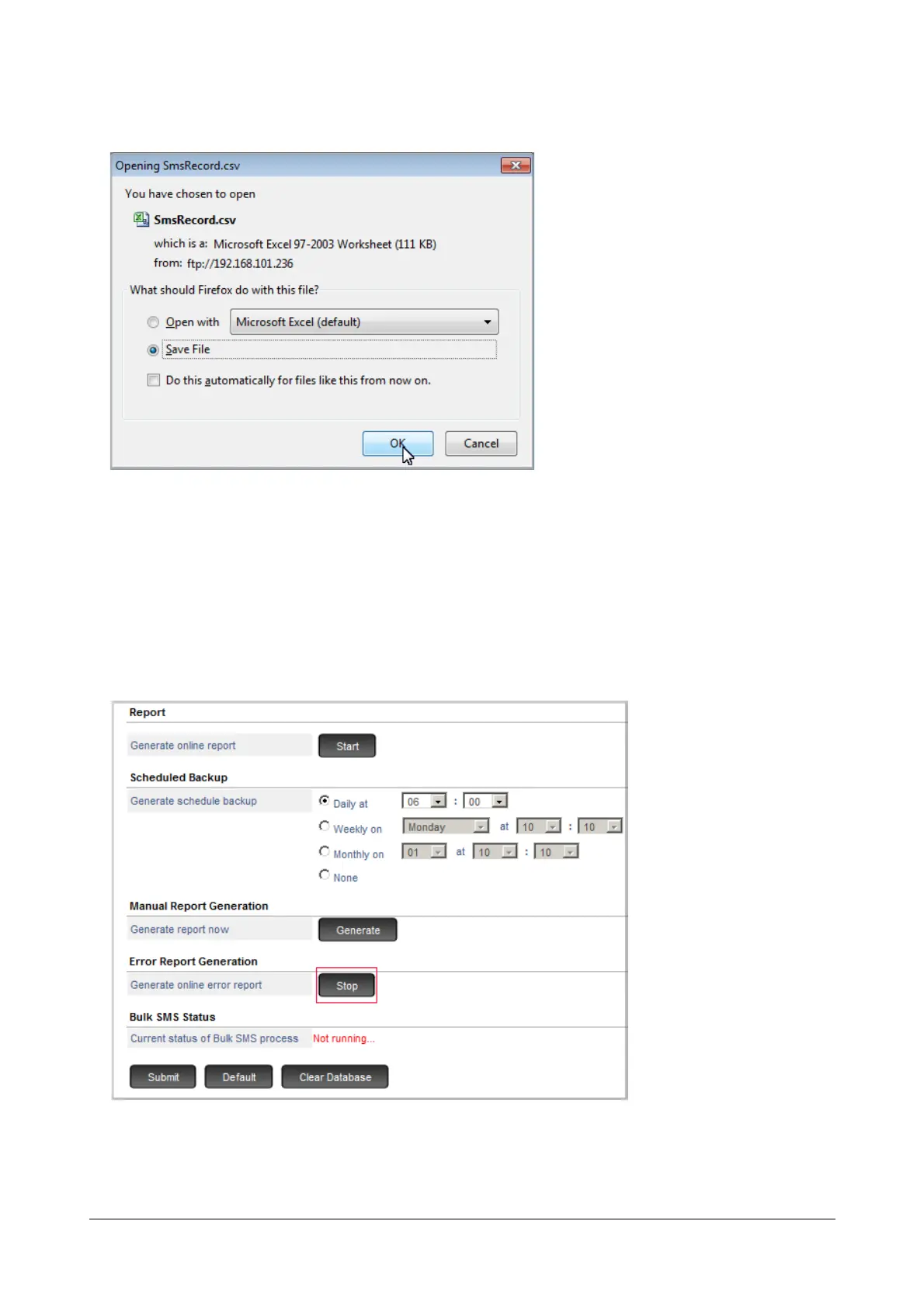• Under SMS Server, click Report.