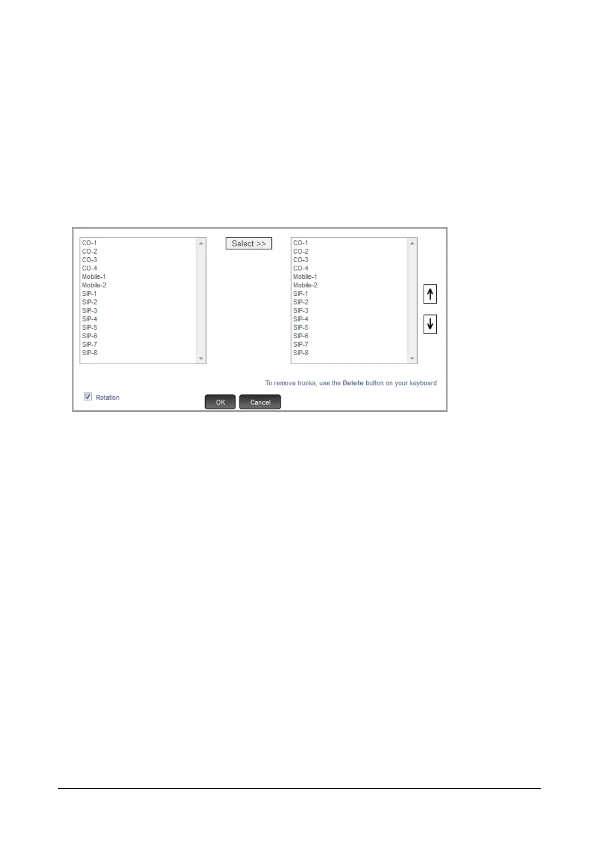 • You may change the sequence of the trunks using the Up and Down buttons on the right display box.