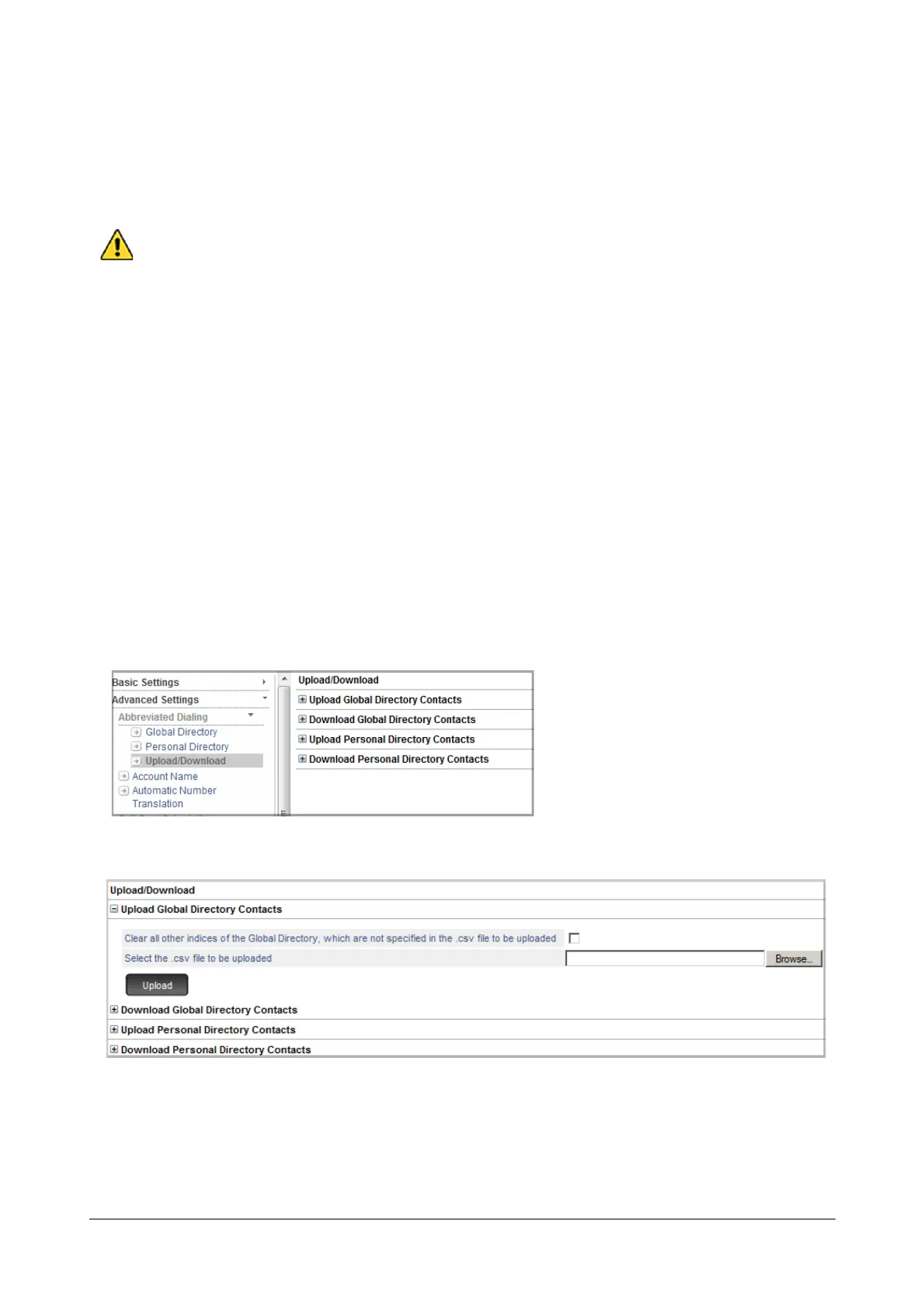• Click Upload Global Directory Contacts to expand.