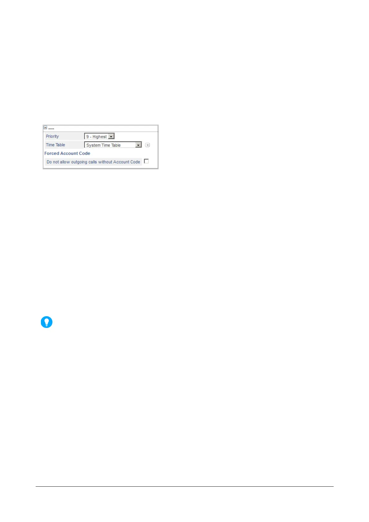 • Select the Do not allow outgoing calls without Account Code check box to enable this feature on the
