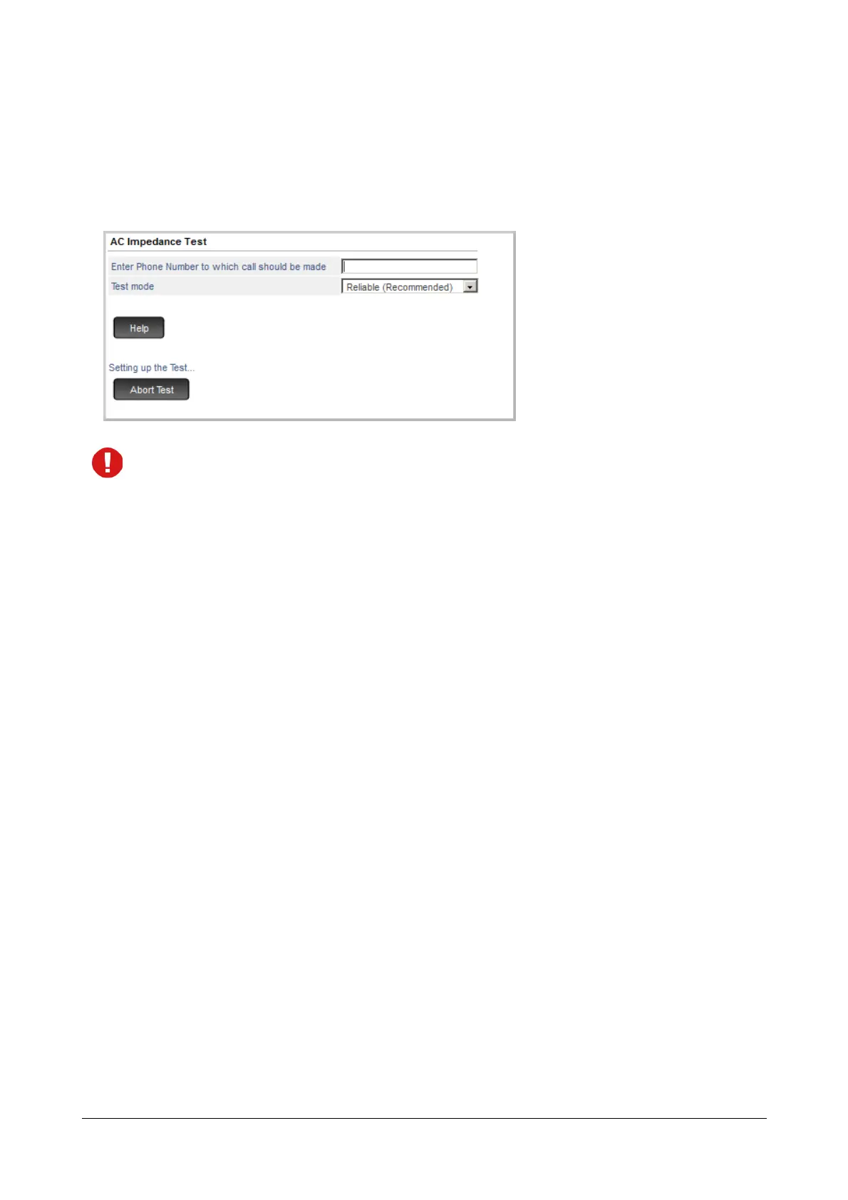 • Click Start Test. The system calls the phone number you configured. The message ‘Setting up the Test....’