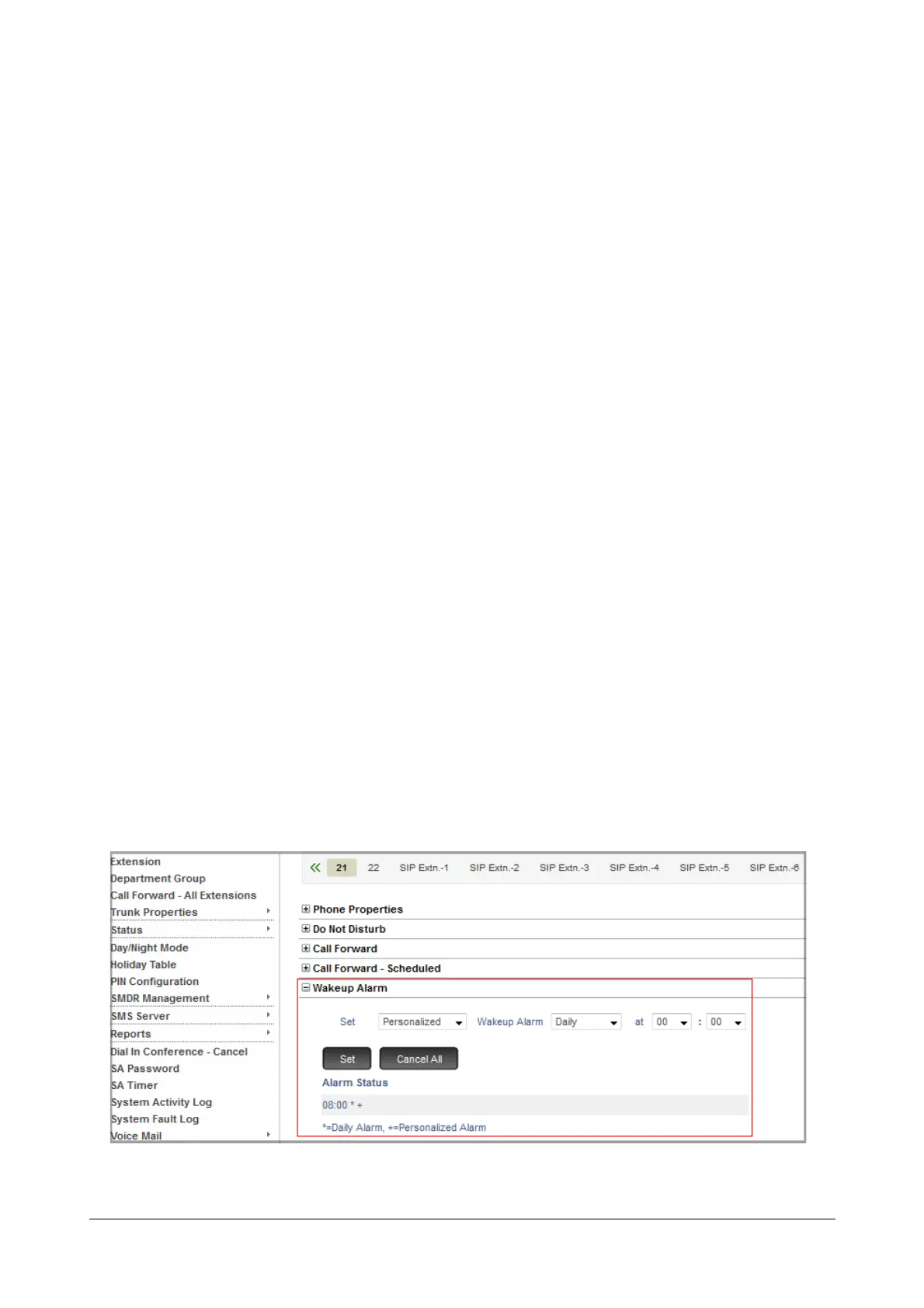 To set Alarm for the extension user
