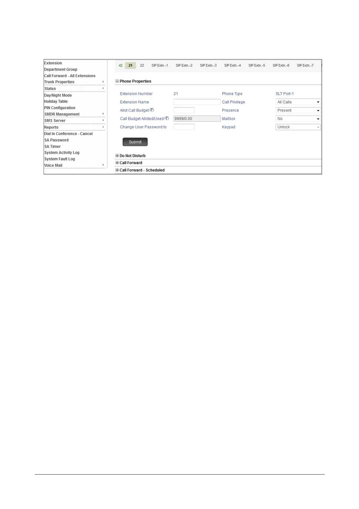 • To allot call budget to another extension, click the extension number tab, and follow the same instructions