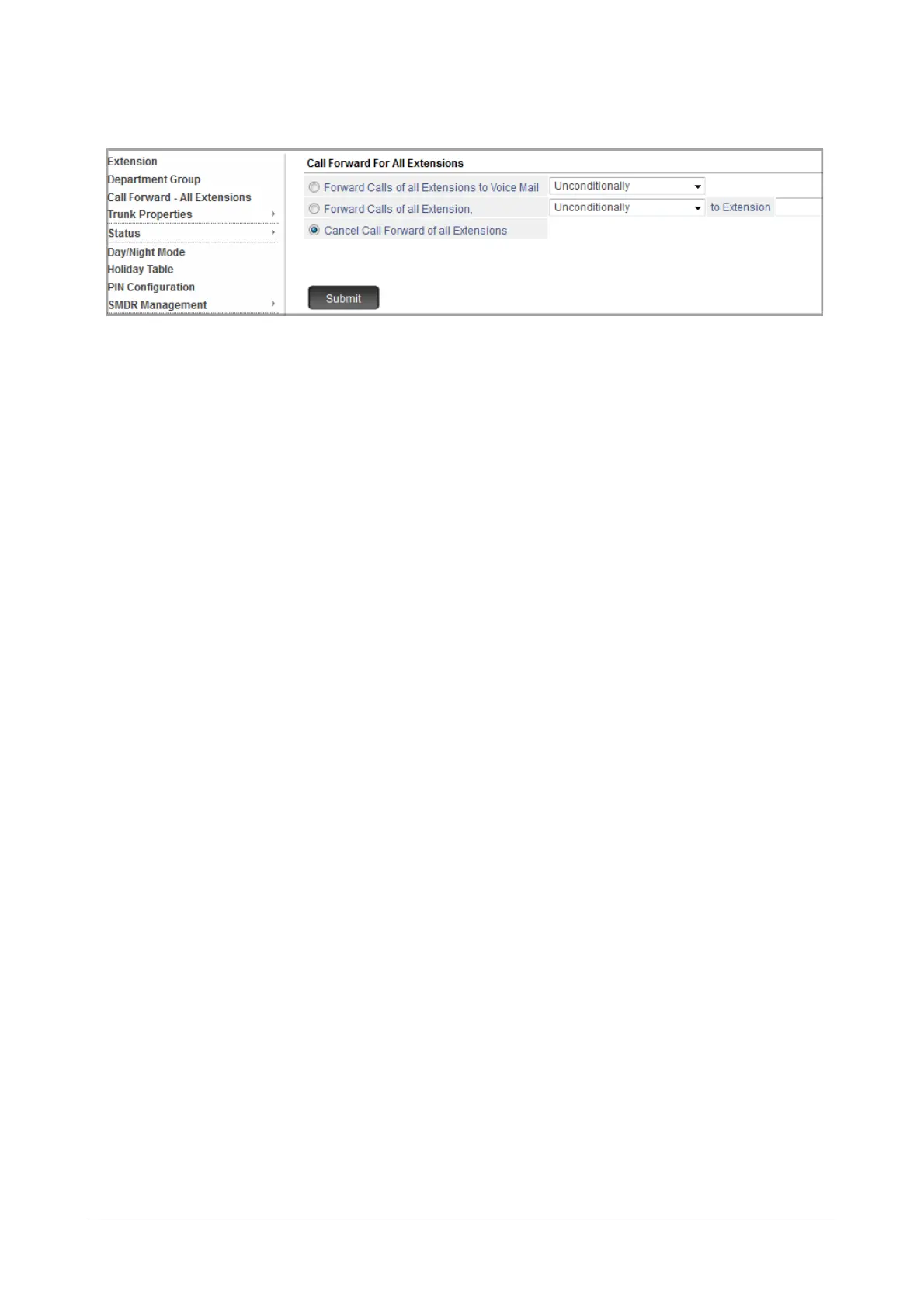 • To Cancel Call Forward, select Cancel Call Forward of all Extensions.