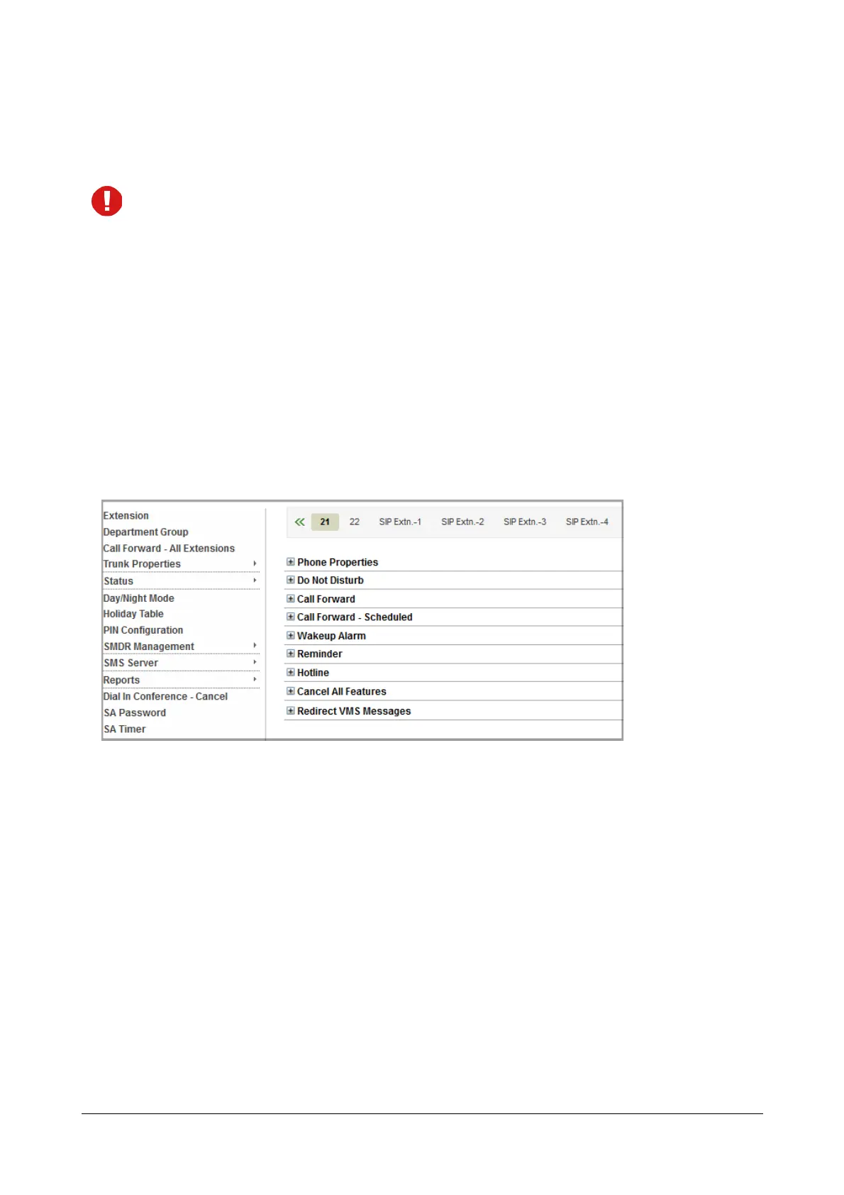 The Operator or any extension user having access to System Administrator mode can set or cancel Call Forward-