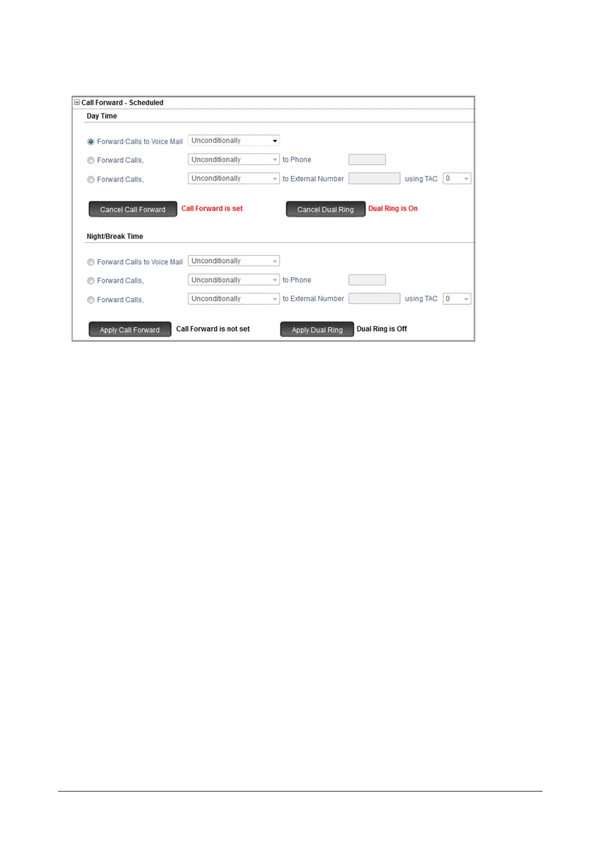 • Click Apply Call Forward to set Call Forward -Scheduled.