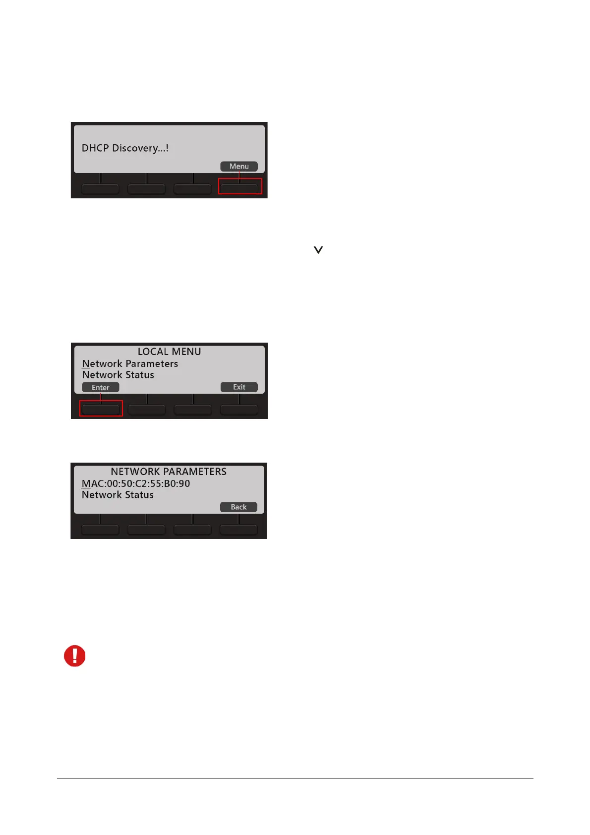 • In the Local Menu of the phone, select Network Parameters by pressing the Enter Key.
