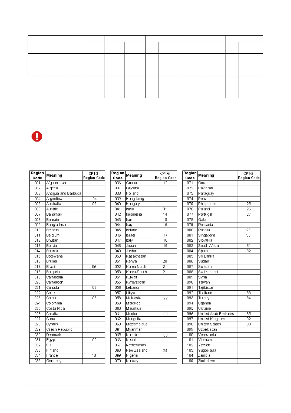ms On - 100 ms Off, 400 ms On - 100 ms Off (same for all Regions)