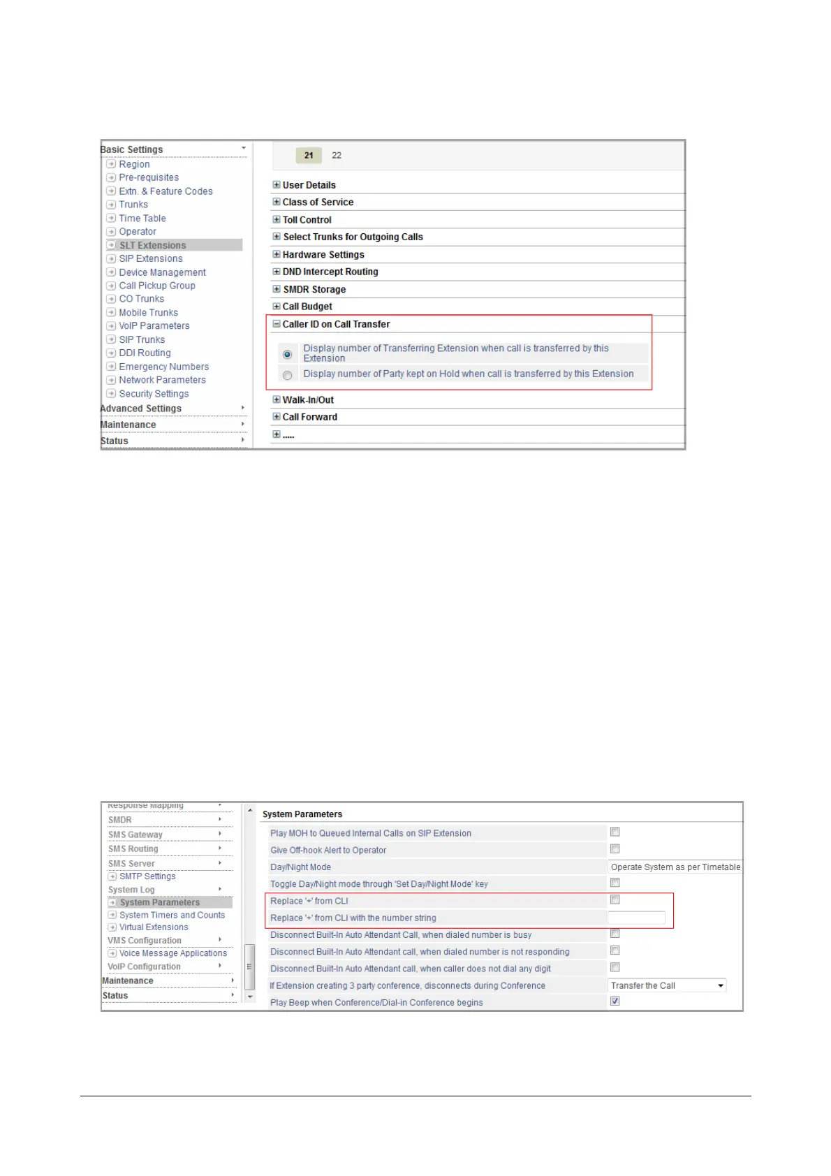 • To configure CLIP Type and Caller ID on Call Transfer on another SLT extension, click the desired