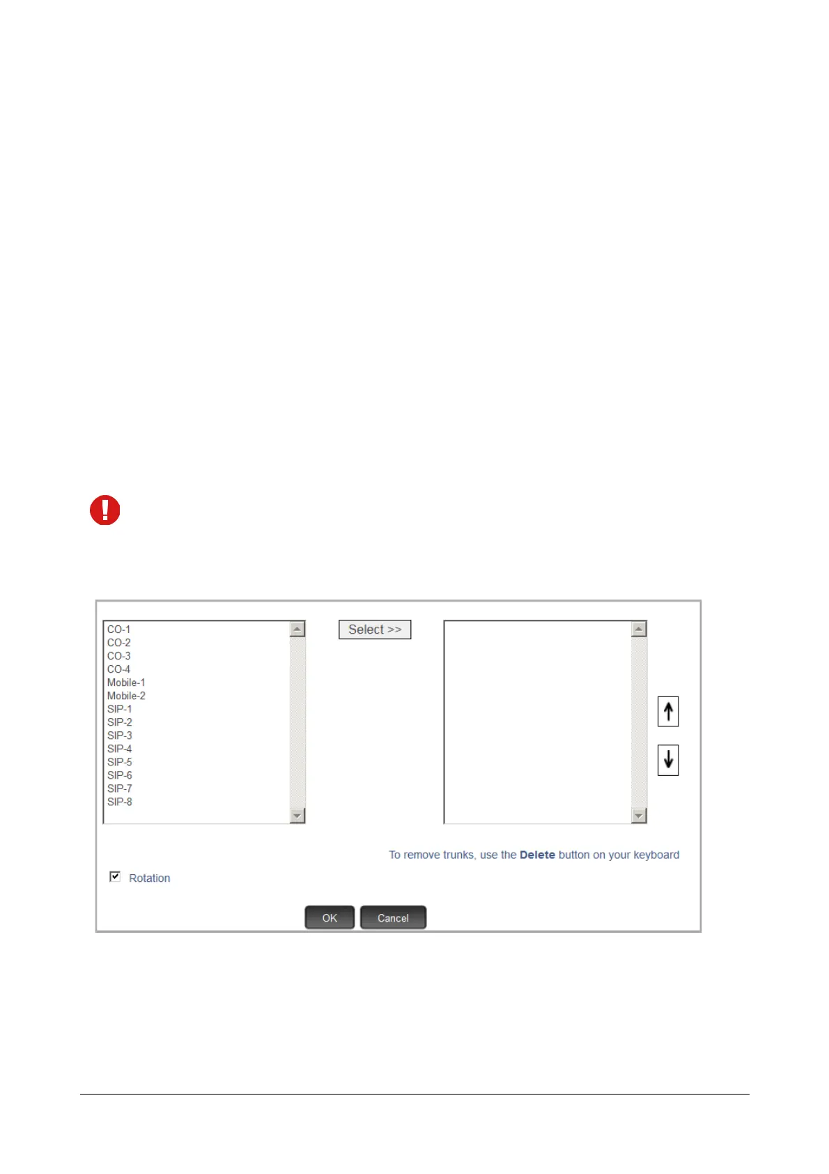 If you have enabled On-Site Configuration, only those trunks that are connected will appear in the box.