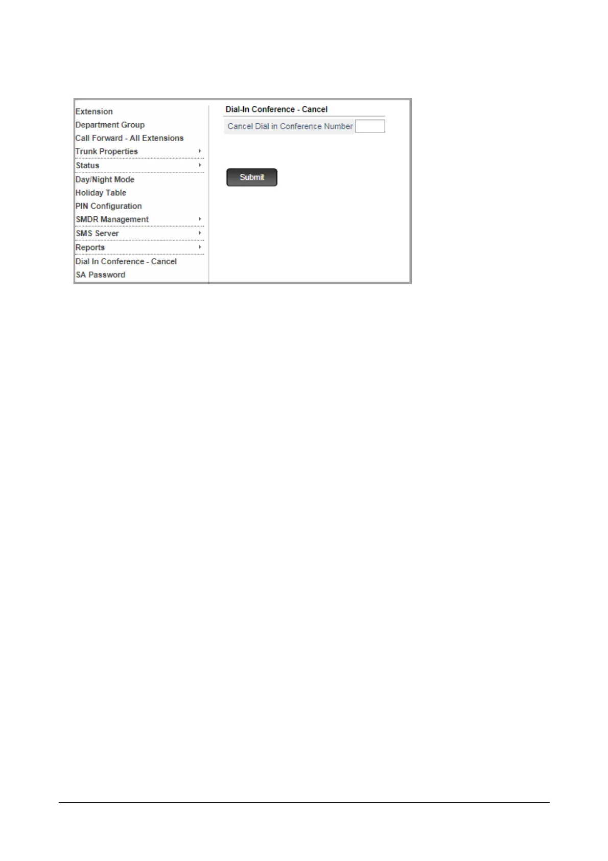 • Enter the conference number (1 or 2) which you want to cancel in the Cancel Dial-In Conference