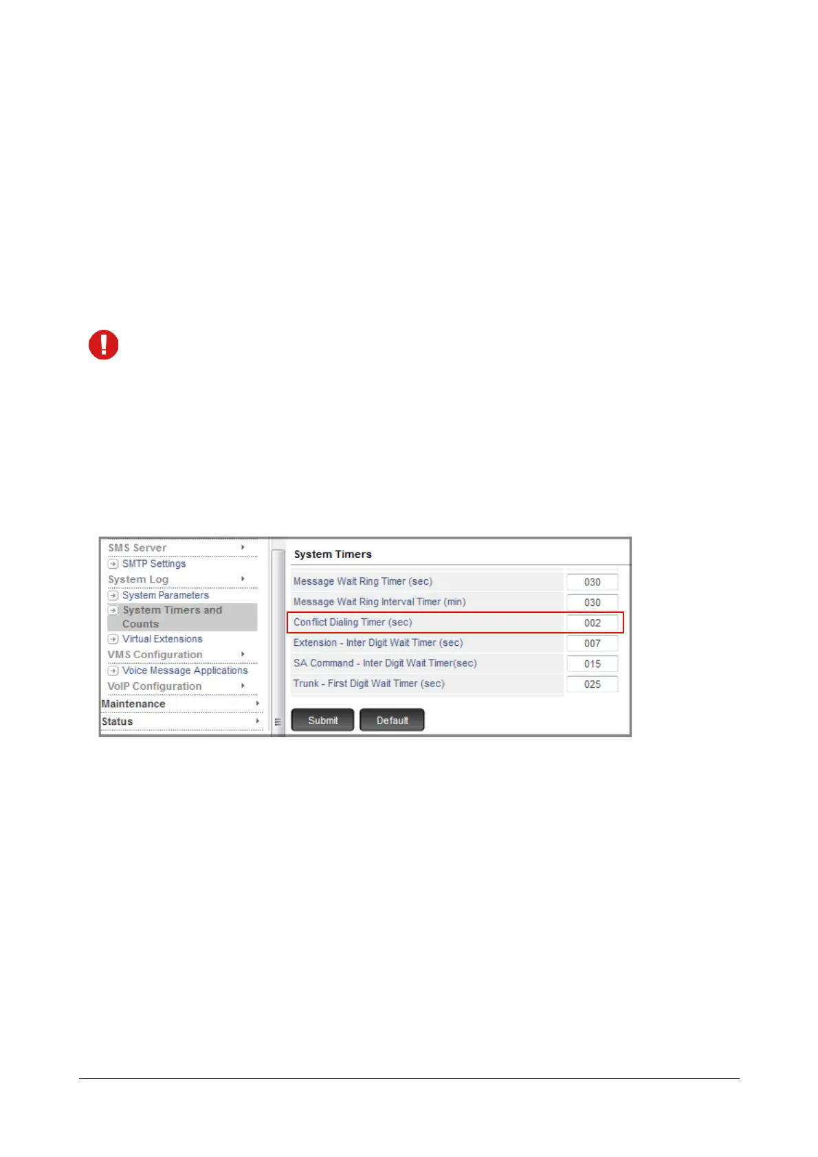 If the duration of the Conflict Dialing Timer is long, it may cause delay in the system's response to the