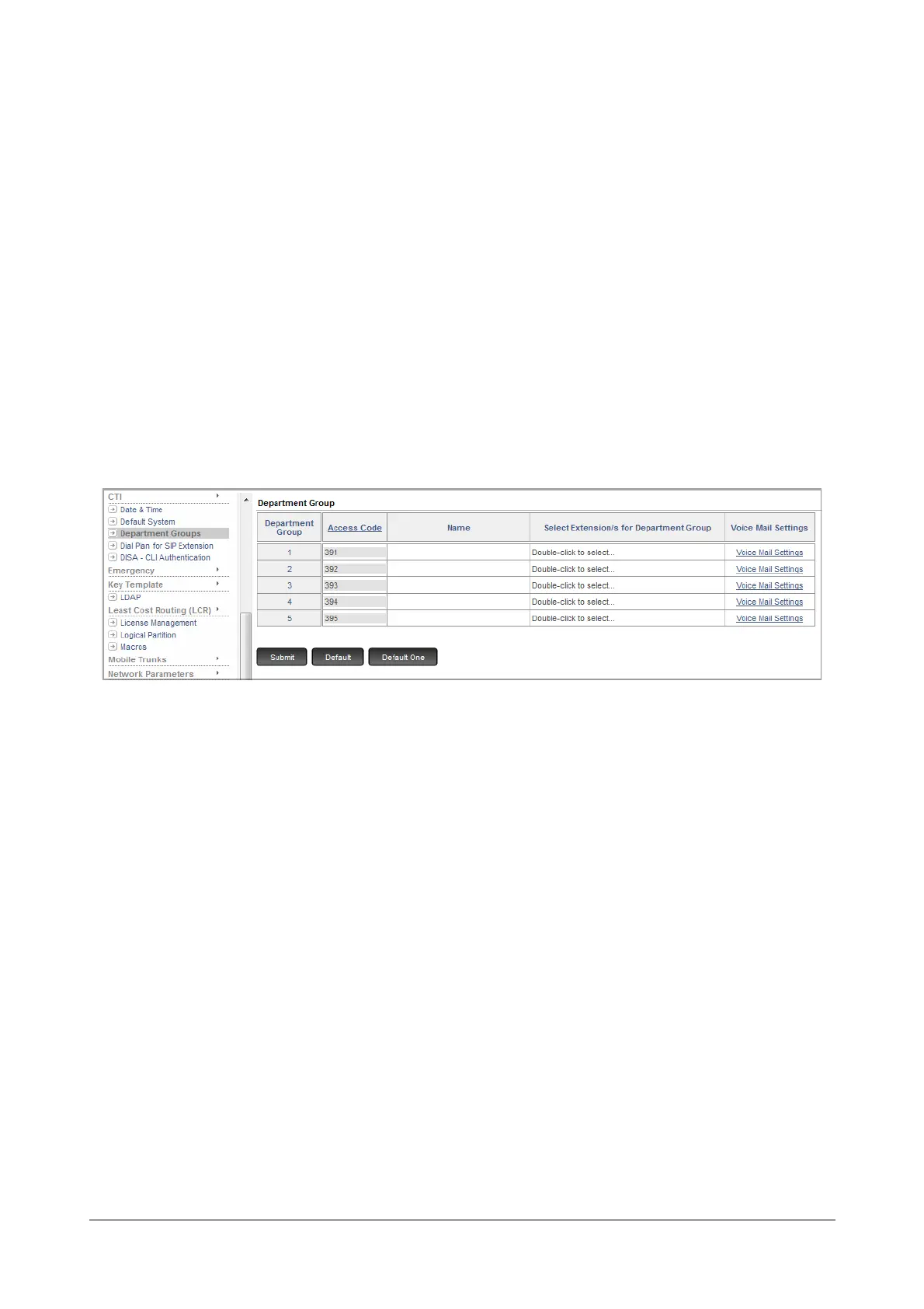 By default, the Access Codes assigned to Department groups are from 391 to 395.