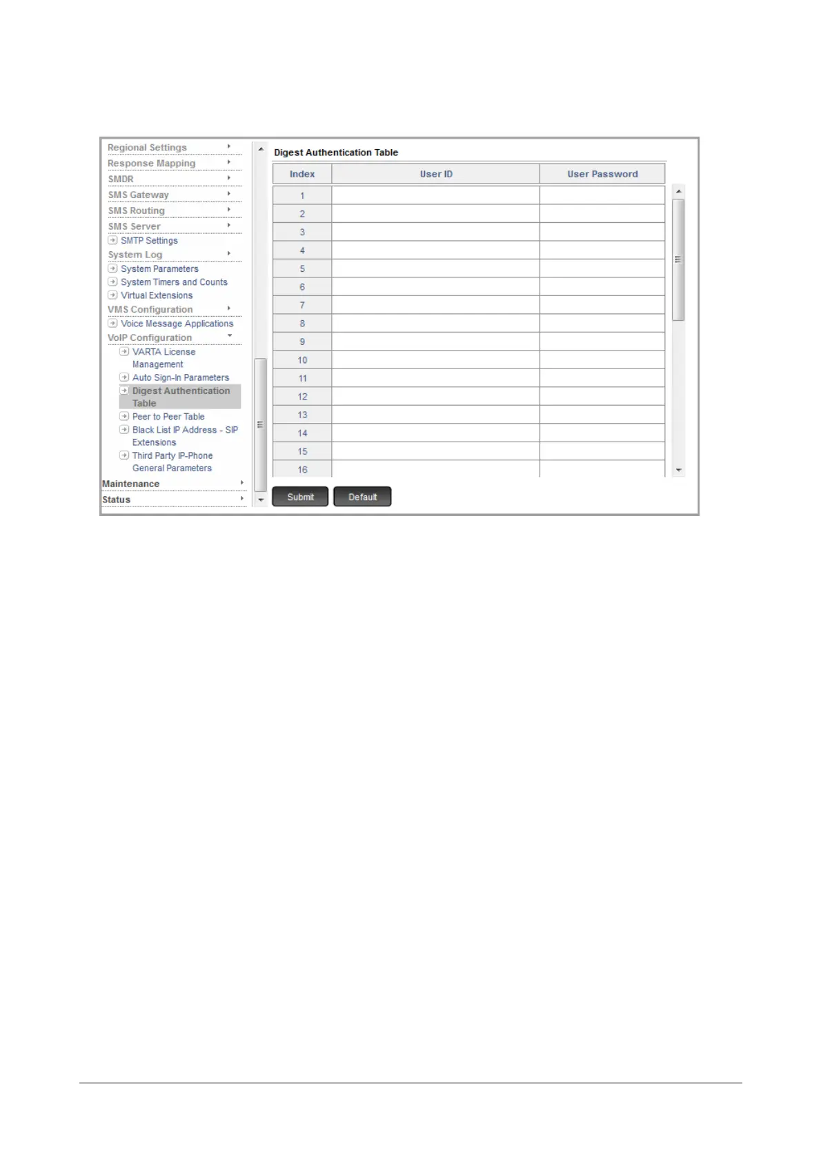 • Click Digest Authentication Table.