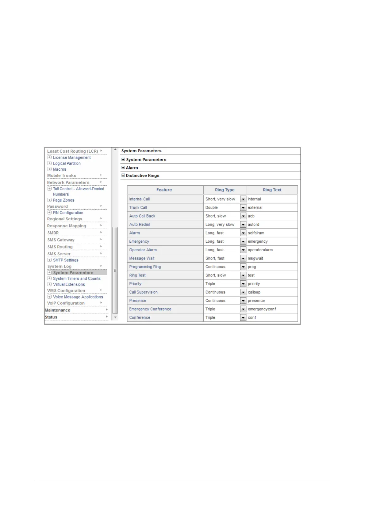 • Select the desired Ring Pattern (Ring Type) for each call event/feature that you want to customize.