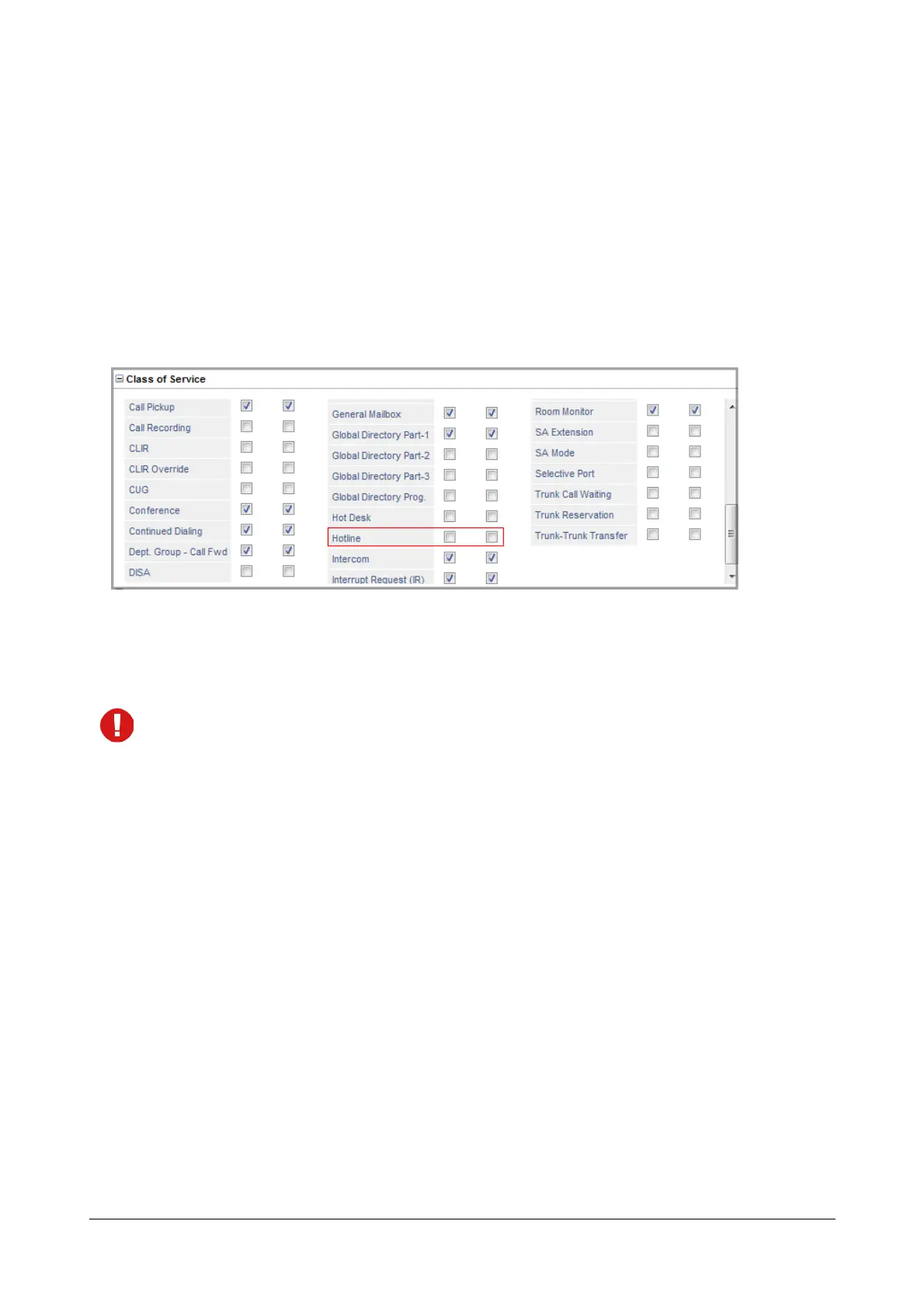 To be able to use Hotline, extension users must have this feature enabled in their “Class of Service (CoS)” for the