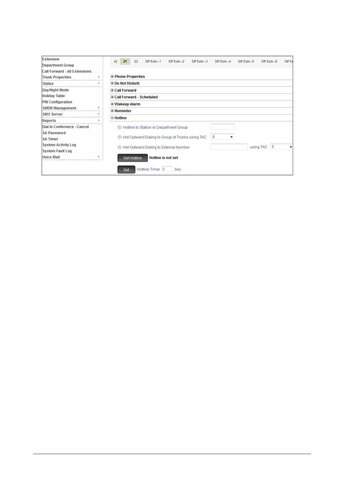 • To set Hotline for an Extension or Department Group, select the radio button Hotline to Station or