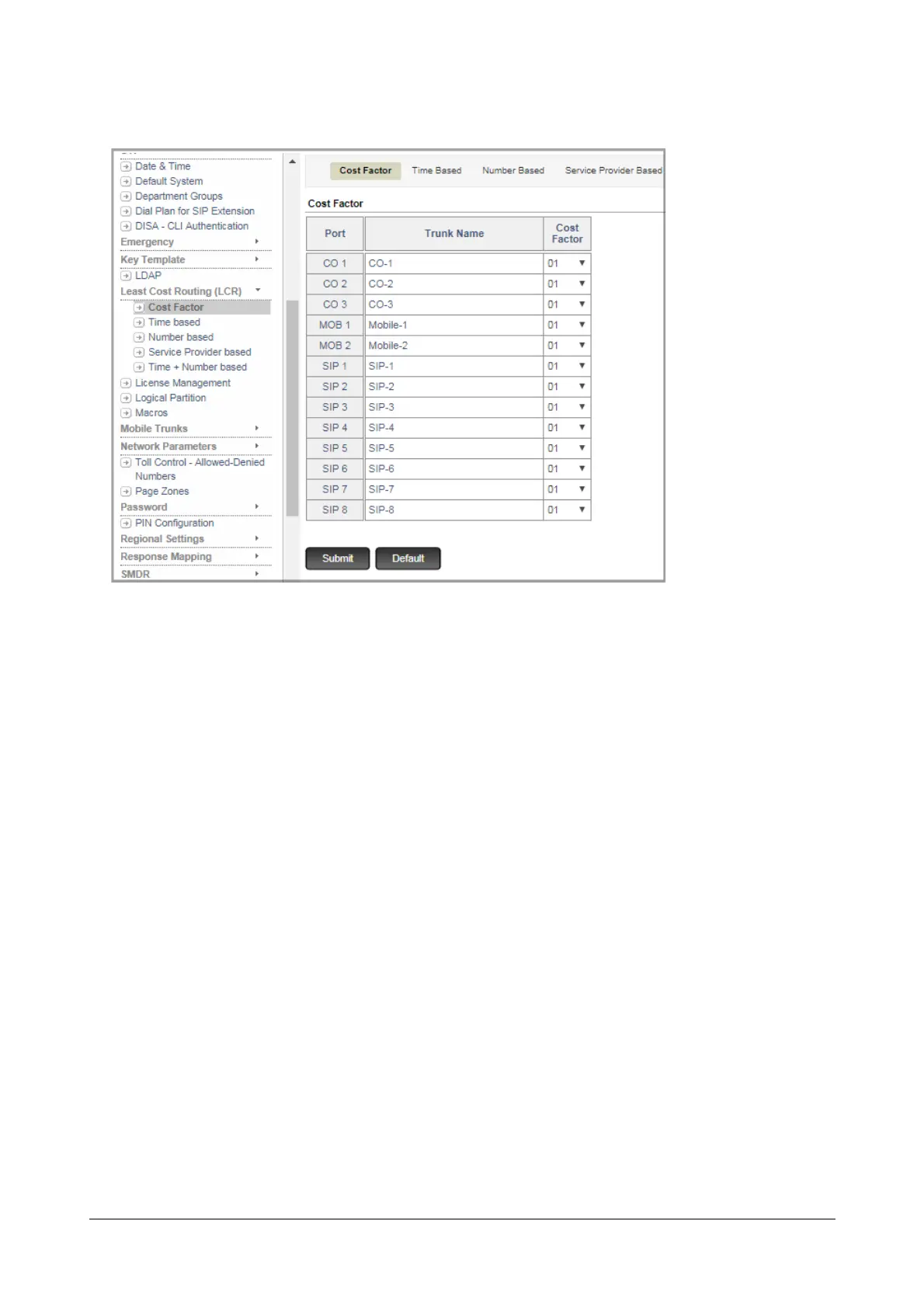 •The Cost Factor table displays all the Port Type-Number of the system and the Trunk Names.