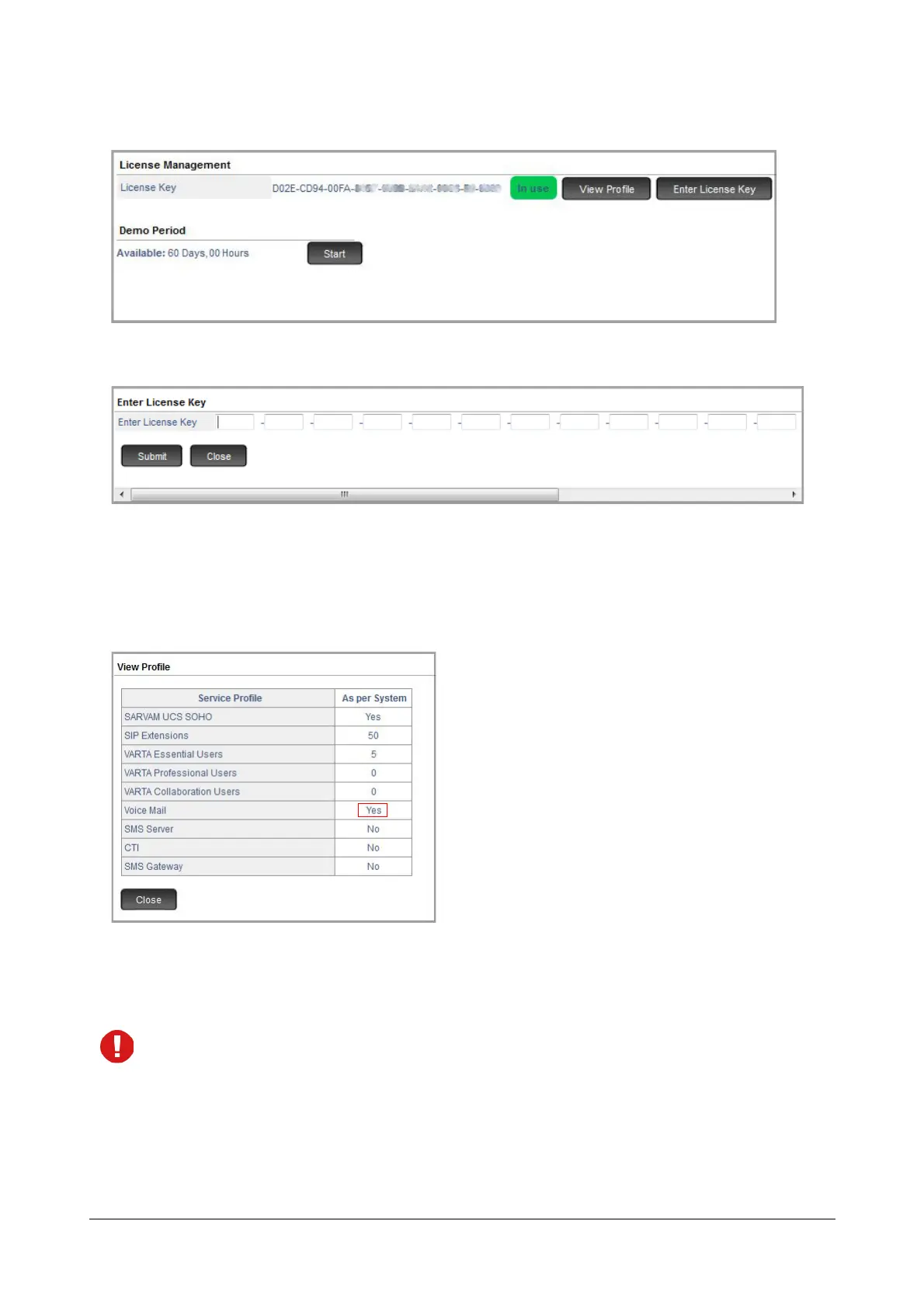 The current License Key and Service Profile will remain unchanged when the system is set to default or