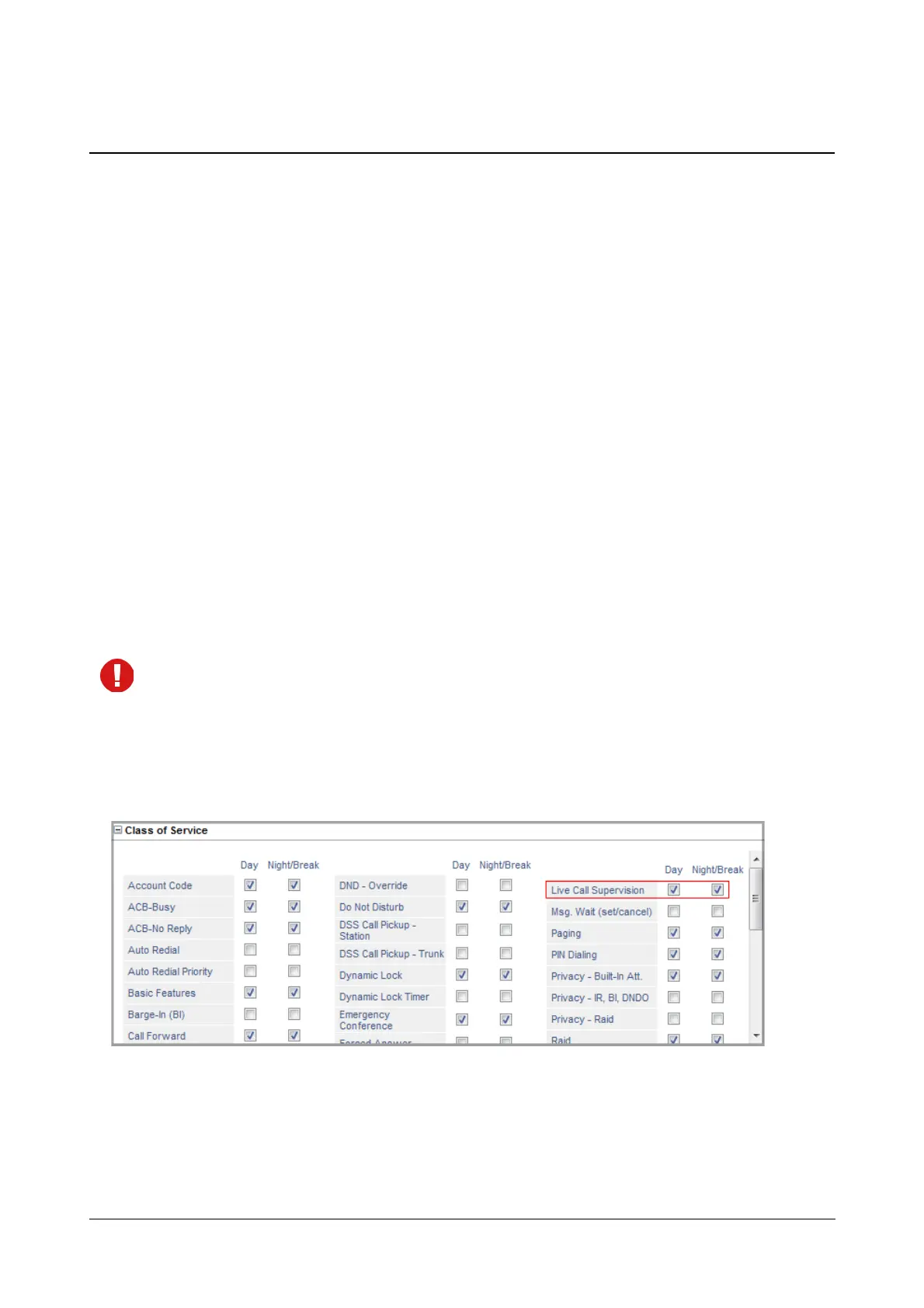To be able to use Live Call Supervision, extension users must have this feature enabled in their “Class of Service