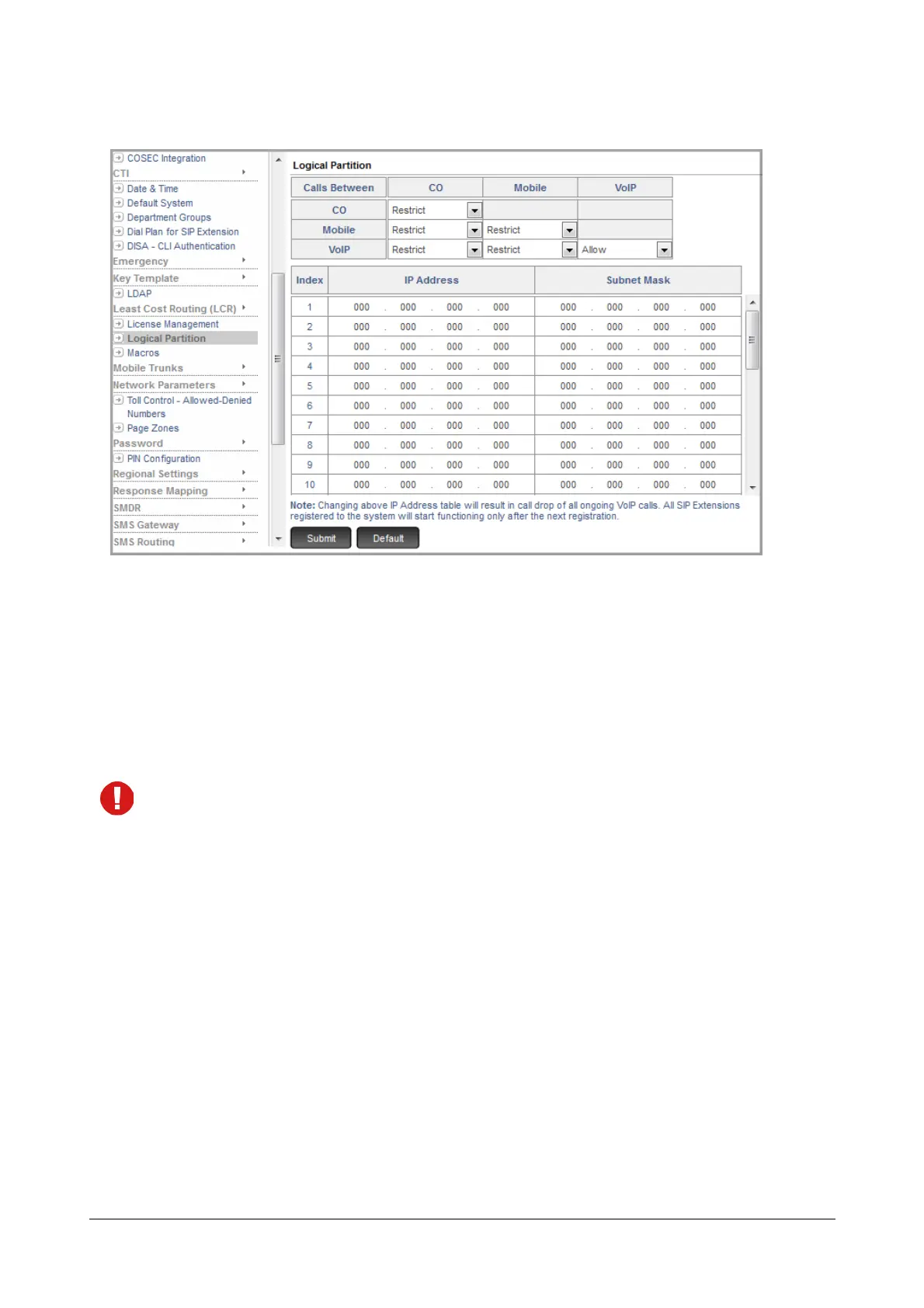 want to allow the Internal Extension and External (Trunk) calls without checking the logical partition. These