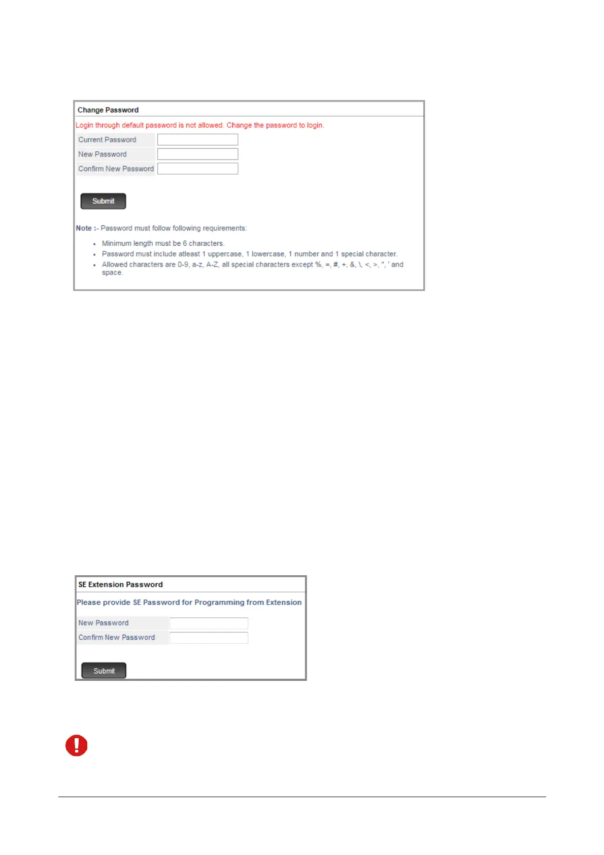 You will be prompted to change the default SE Extension Password.