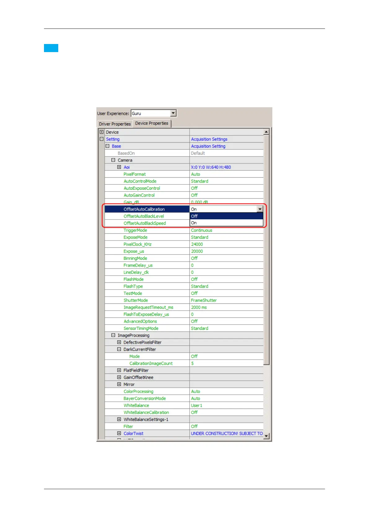 Figure 3: Image corrections (screenshot mvBlueFOX): OffsetAutoCalibration = Off