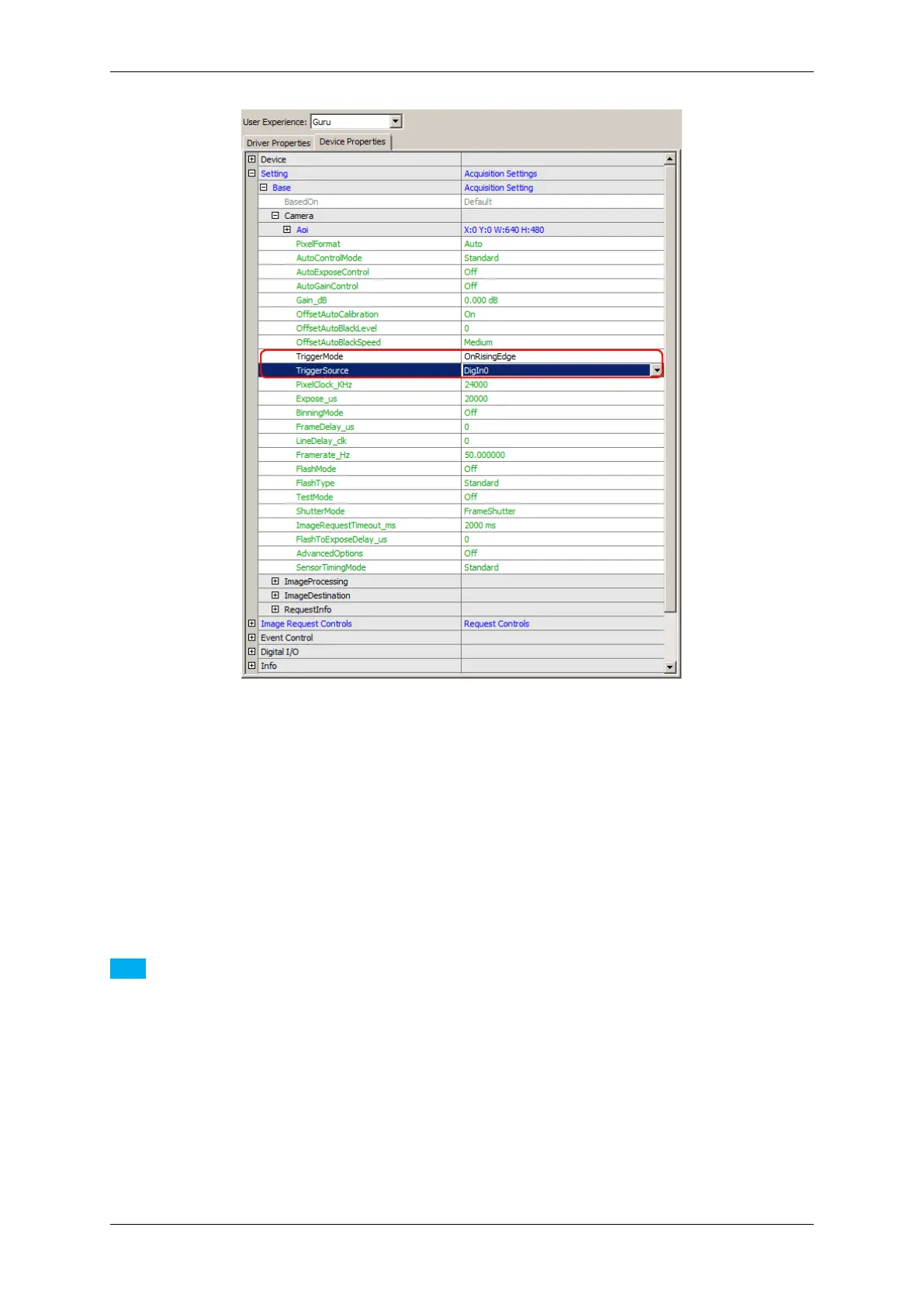 This assumes that the image acquisition shall start with the rising edge of the trigger signal. Every camera must be