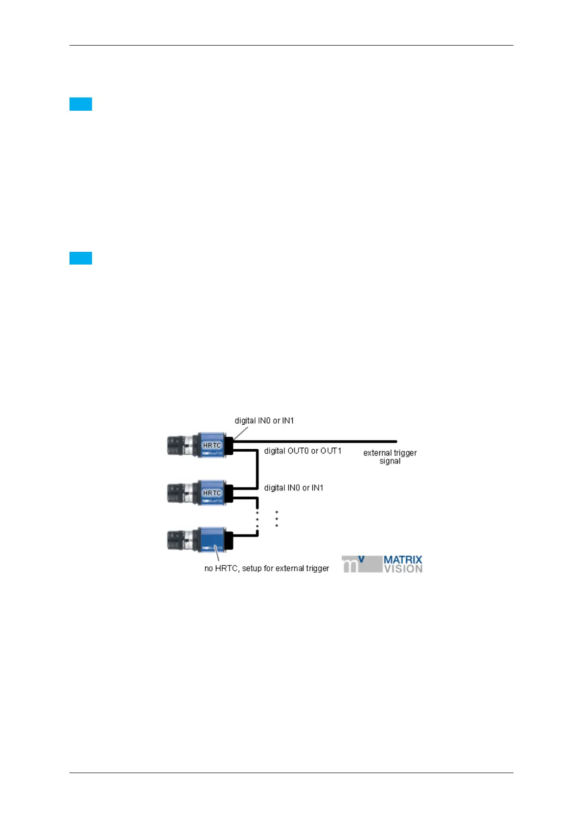 If a defined delay should be necessary between the cameras, the HRTC can do the synchronization work.
