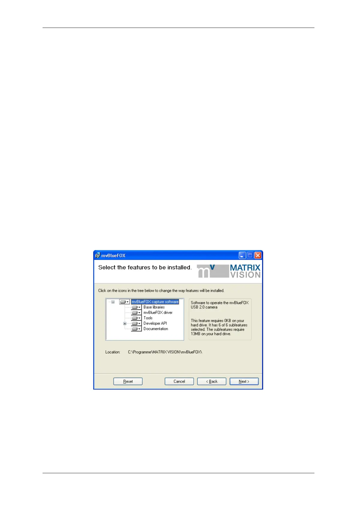 Figure 3: mvBlueFOX installer - Select features
