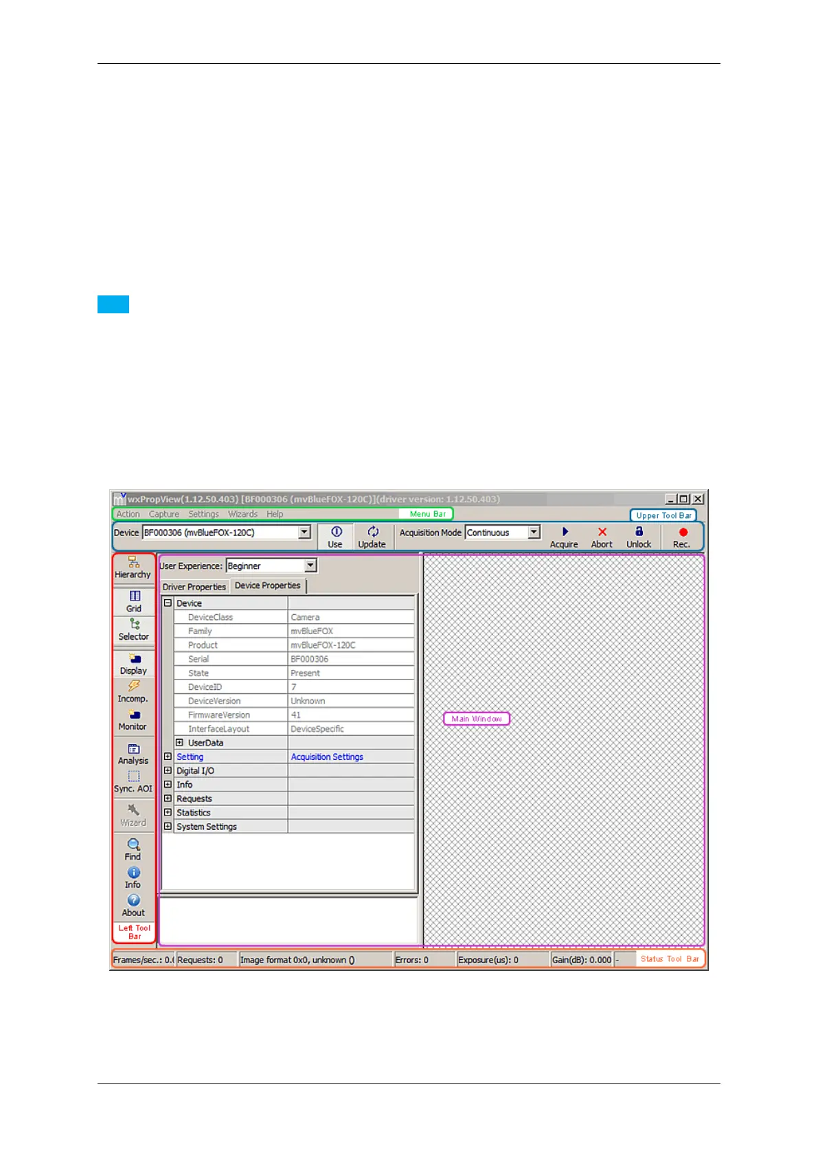 Following screenshots are representative and where made using a mvBlueFOX camera as the capturing