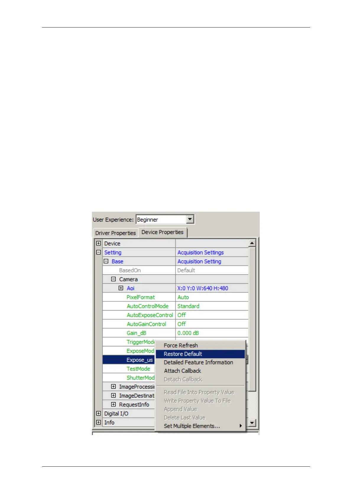 value of the device, are displayed in green. A property value once modified by the user will be displayed in black
