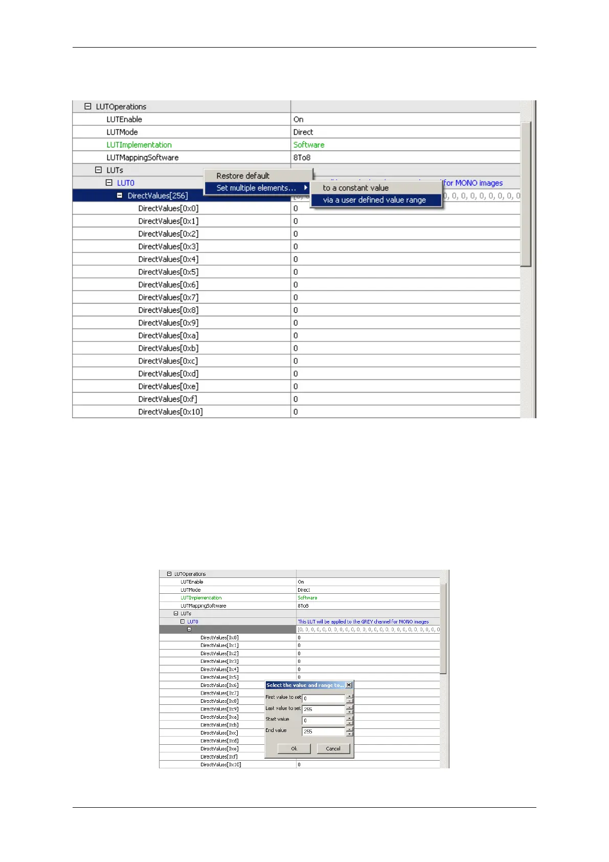 It's possible to either set all (or a range of) elements of the property to a certain value OR to define a value range,