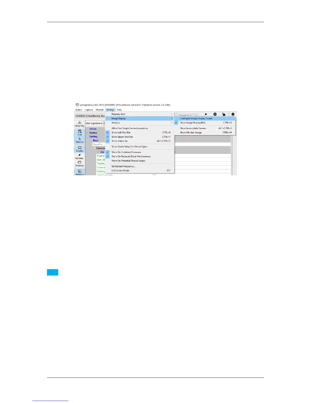 wxPropView (p. 74) shows snapped or live images in the display area of the GUI. The area, however, shows the