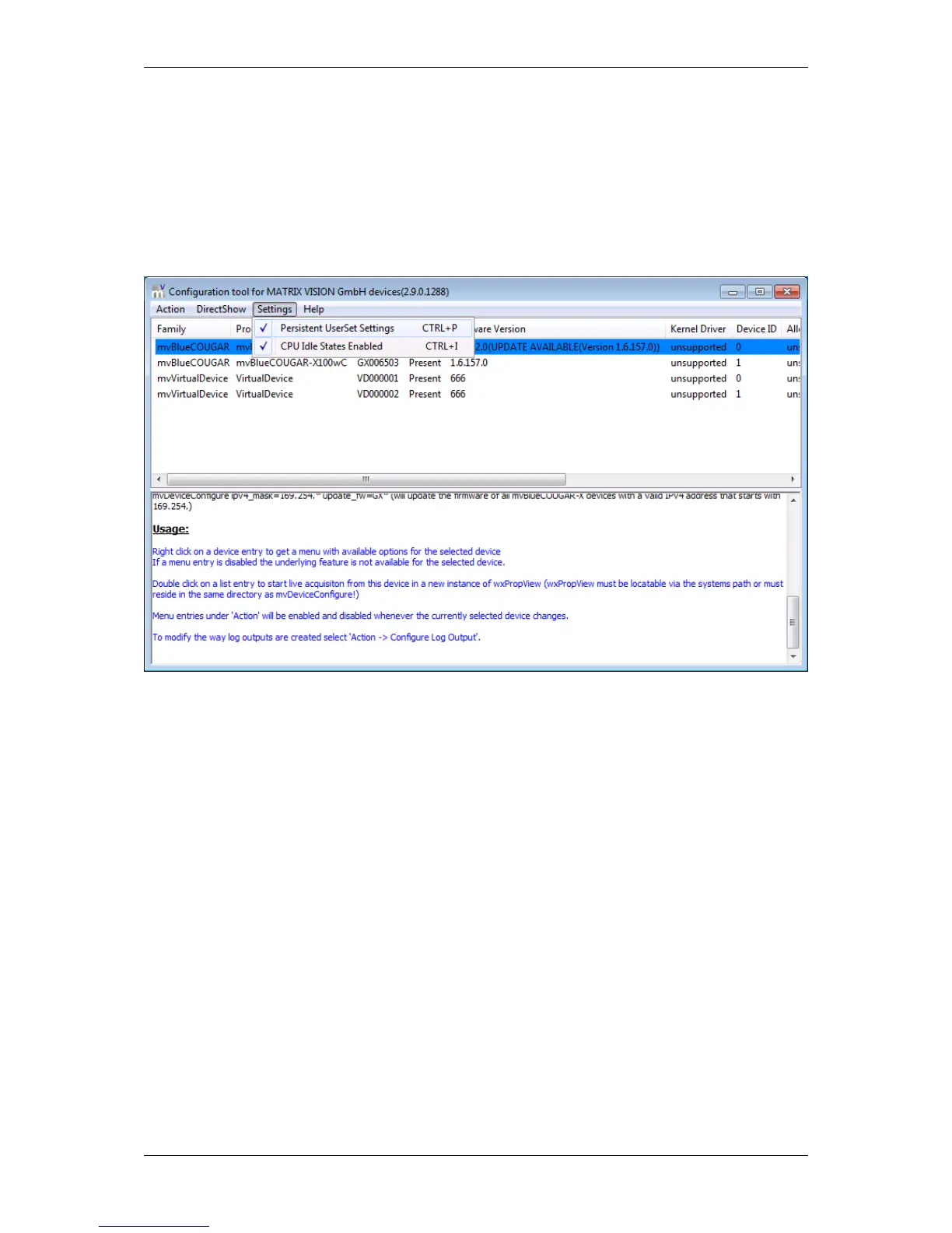 Figure 32: mvDeviceConfigure - UserSet Persistence
