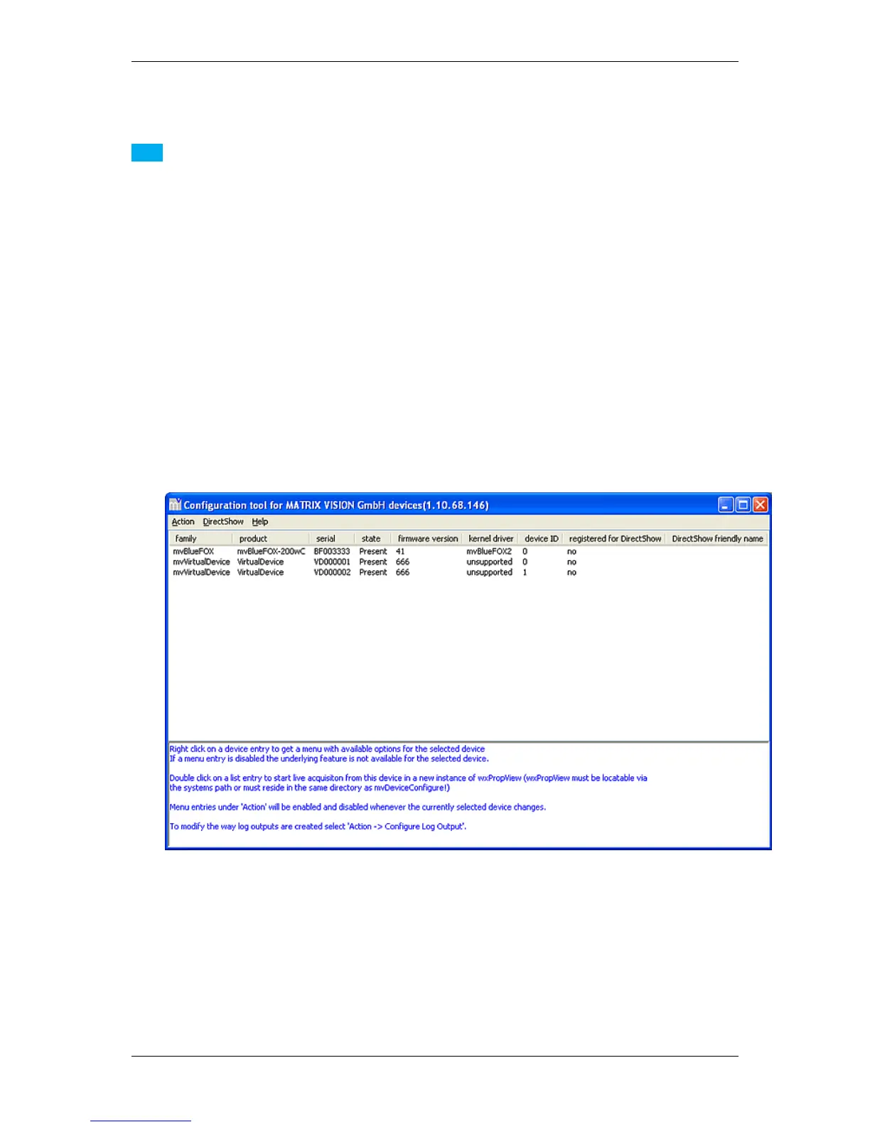 Figure 1: mvDeviceConfigure - start window