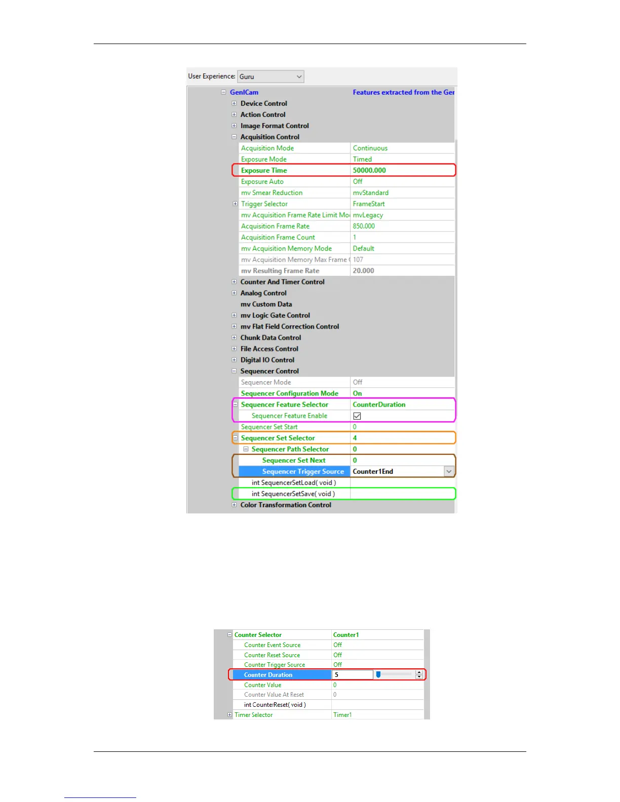 12. Set the "Counter Duration" in "Counter And Timer Control" (red box, figure 5): "Counter Duration" = "5".