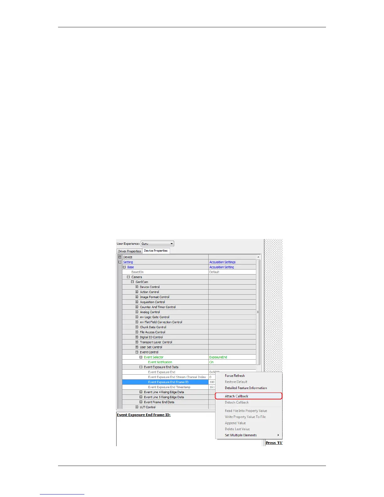Figure 1: wxPropView - "Attach Callback" to Event Exposure End Frame ID