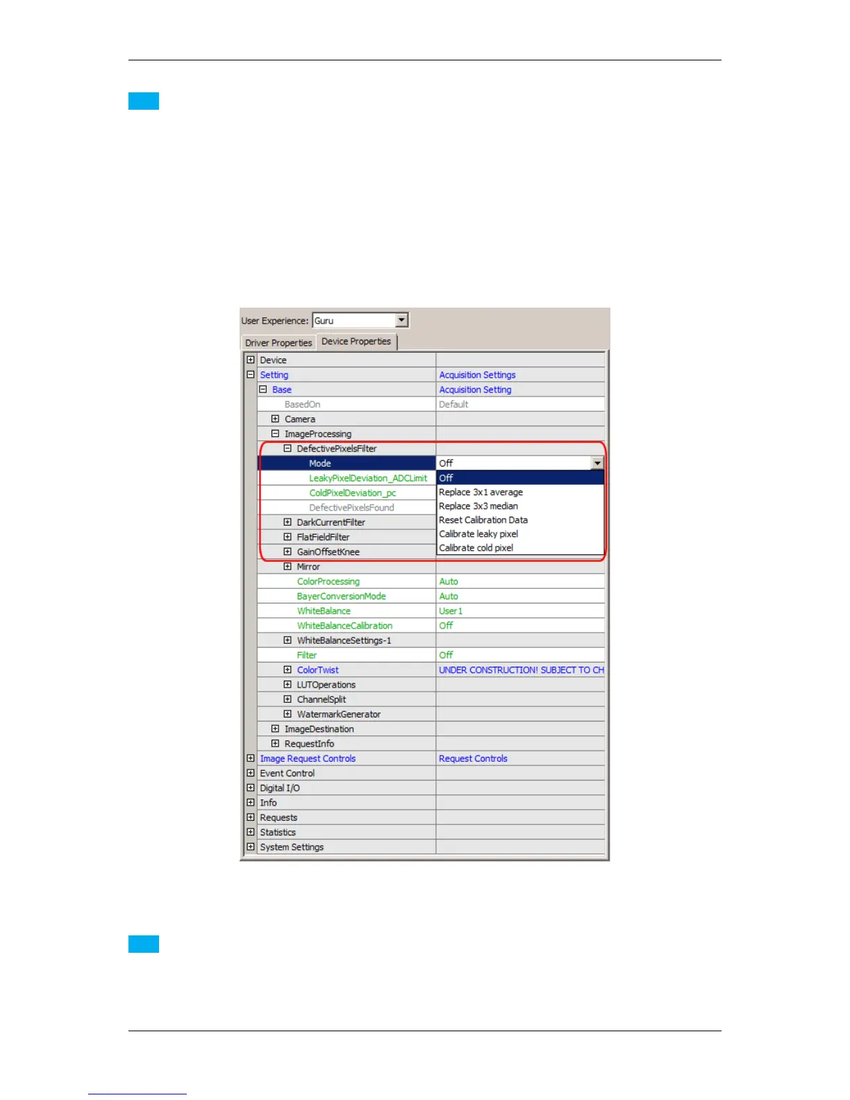 "DefectivePixelsFound". If you want to reset the correction data or repeat the correction process you