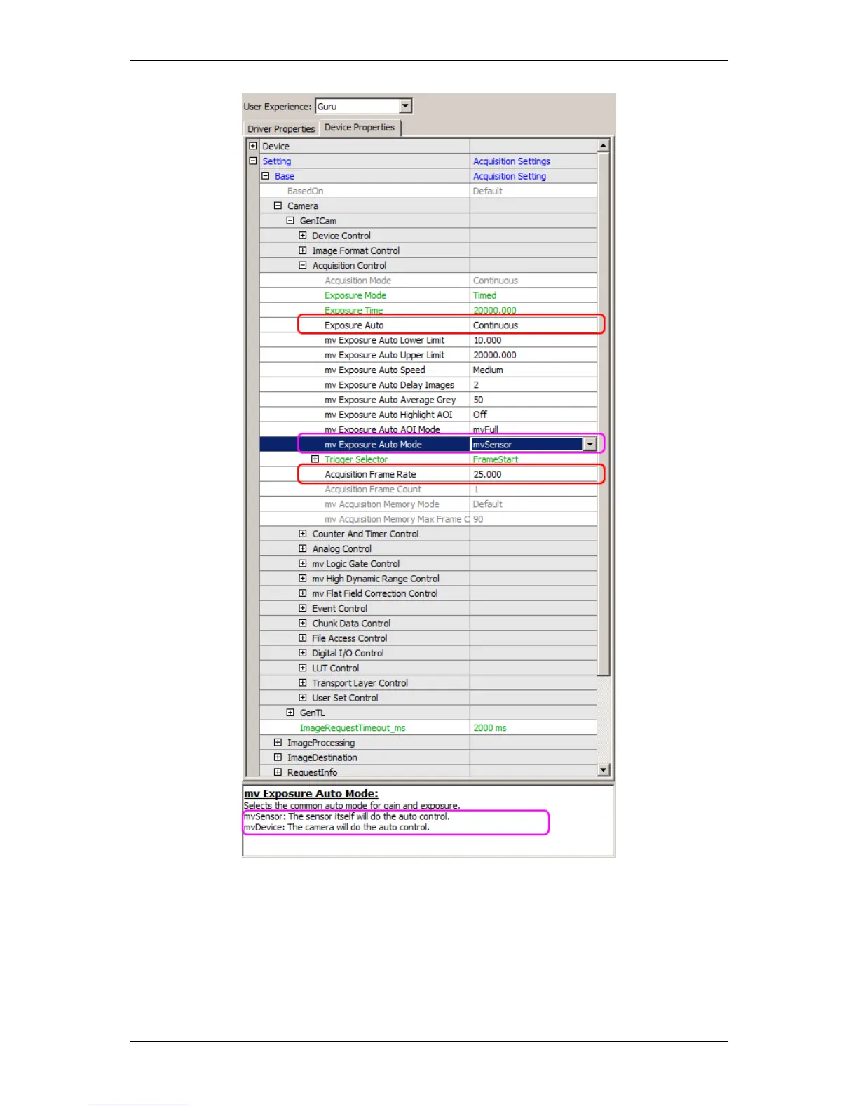 Figure 1: wxPropView - Auto expose is turned on and the frame rate is set to 25 fps