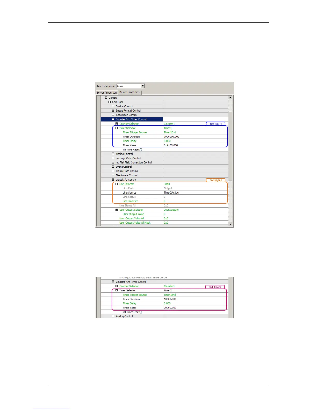 The following figures show, how you can set the timers using the GUI tool wxPropView (p. 74)